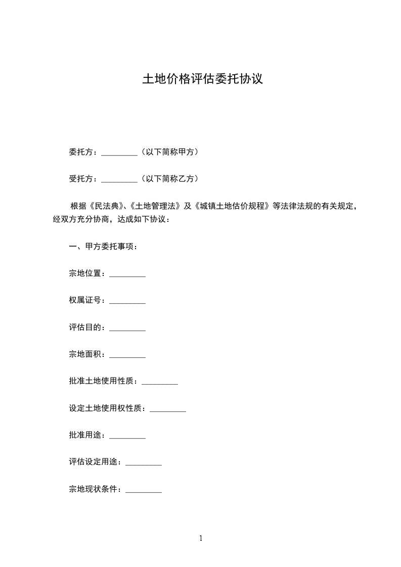 根据《民法典》、《土地管理法》及《城镇土地估价规程》等法律法规的有关规定,经双方充分协商,达成如下协议: