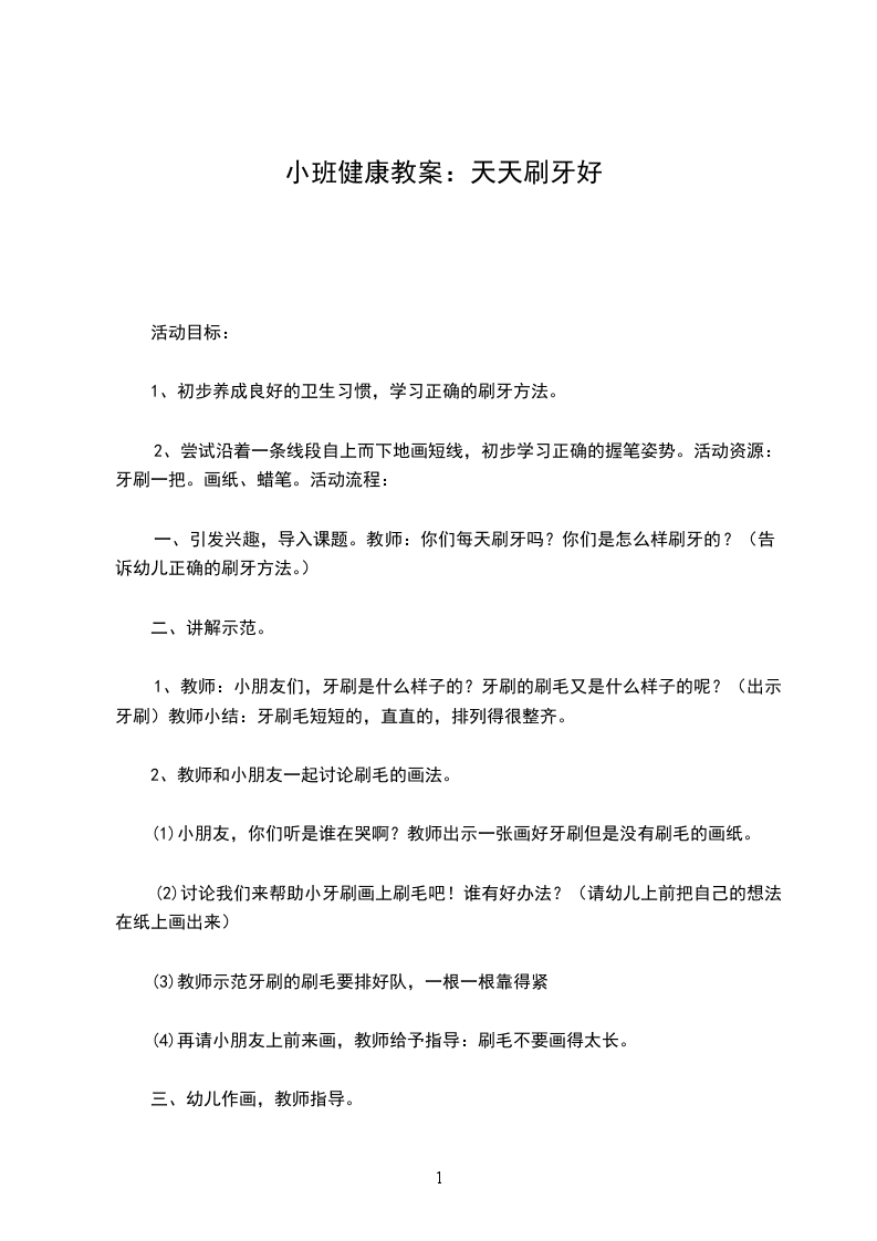 2、尝试沿着一条线段自上而下地画短线,初步学习准确的握笔姿势。活动准备:牙刷一把。画纸、蜡笔。