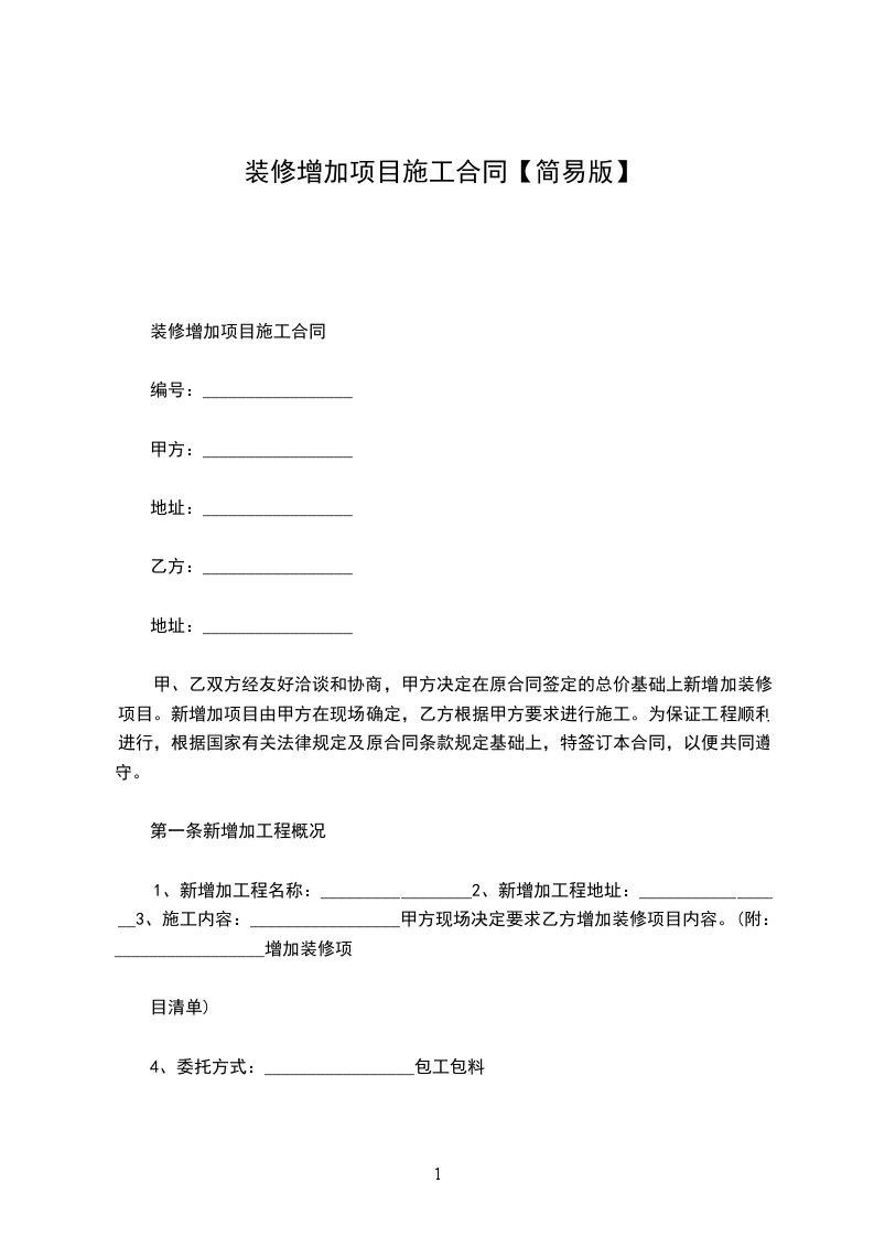 二、甲方将所述增补项目承包给湖北_工程安装有限公司施工。经协商一致,达成以下条款,以资共同遵守。