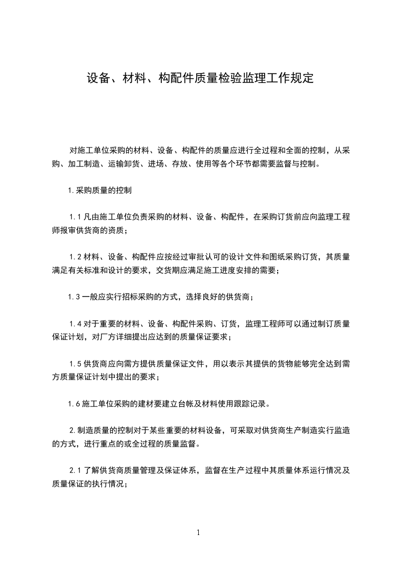 1.4对于重要的材料、设备、构配件采购、订货,监理工程师可以通过制订质量保证计划,对厂方详细提出应达到的质量保证要求;