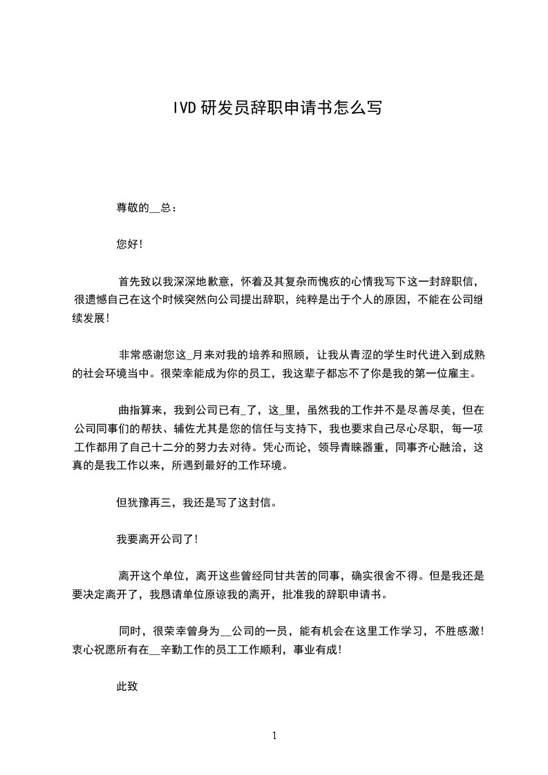 首先致以我深深地歉意,怀着及其复杂而愧疚的心情我写下这一封辞职信,很遗憾自己在这个时候突然向公司提出辞职,纯粹是出于个人的原因,不能在公司继续发展!