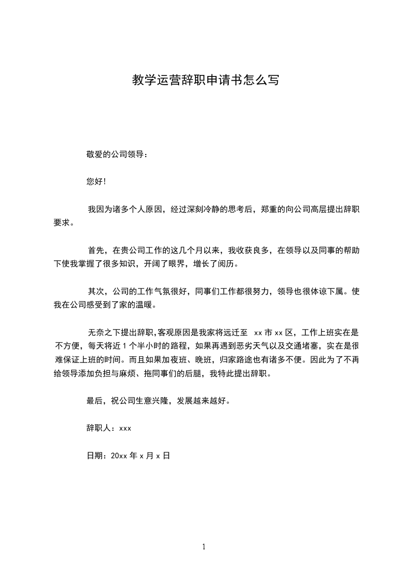 将来无论什么时候, 我都会为自己曾经是公司的一员而感到荣幸。 我确信在公司的这段工作经 历将是我整个职业生涯发展中相当重要的一部分。祝公司领导和所有同事身体健康、工作顺利! 再次对我的离职给公司带来的不便表示抱歉,同时我也希望公司能够体恤我的个人实 际,对我的申请予以考虑并批准。