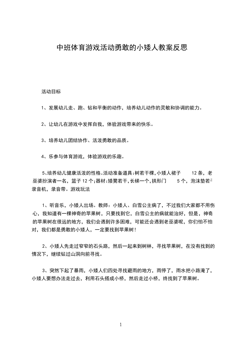 5、培养幼儿健康活泼的性格。活动准备道具:树若干棵,小矮人裙子12条,老巫婆扮演者一名,篮子12个;器材:矮凳若干,长梯一个,拱形门5个,泡沫垫若干,录音机,录音带。游戏玩法