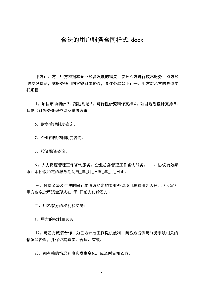 9。人力资源管理工作咨询服务。企业总务管理工作咨询服务。_二、协议有效期限:本协议约定的服务期间自_年_月_日至_年_月_日止。