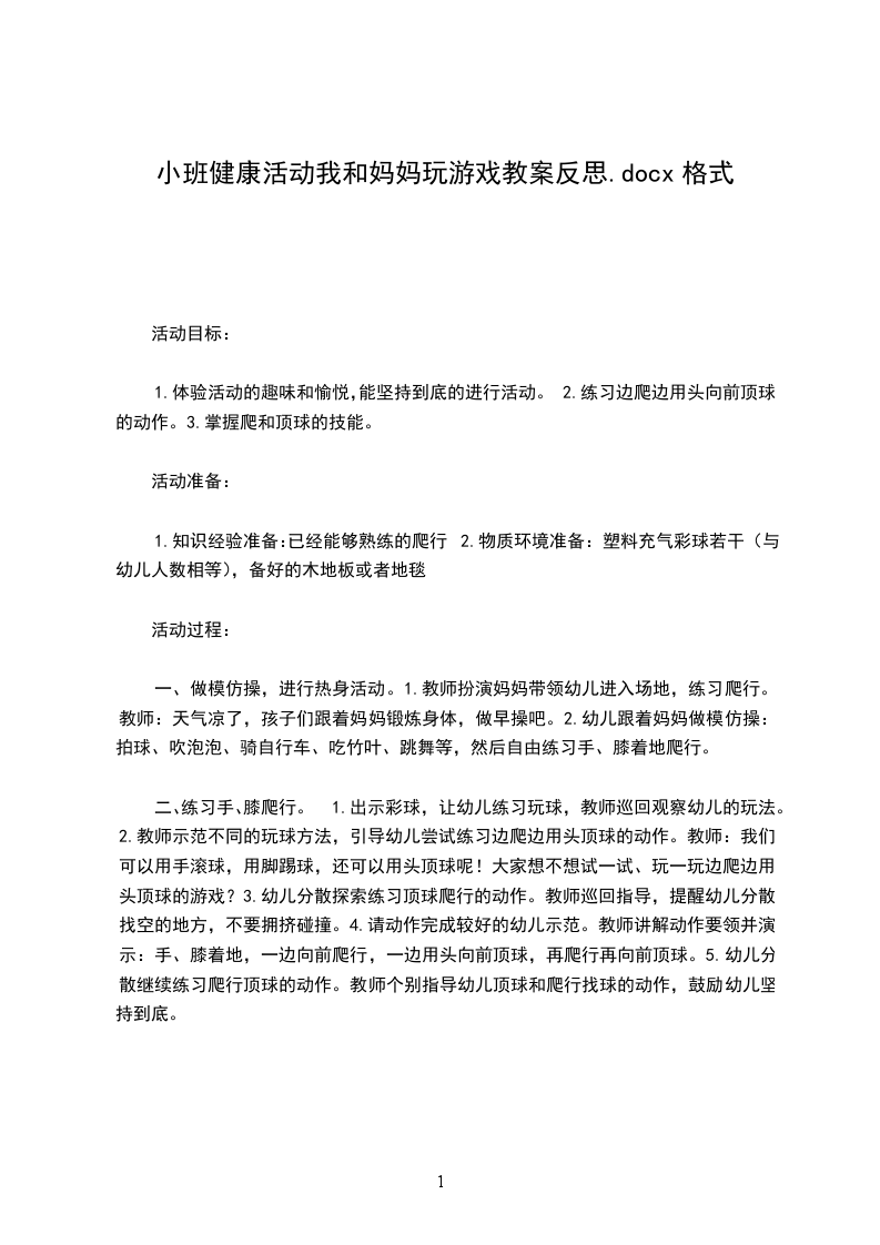 1.知识经验准备:已经能够熟练的爬行2.物质环境准备:塑料充气彩球若干(与幼儿人数相等),备好的木地板或者地毯