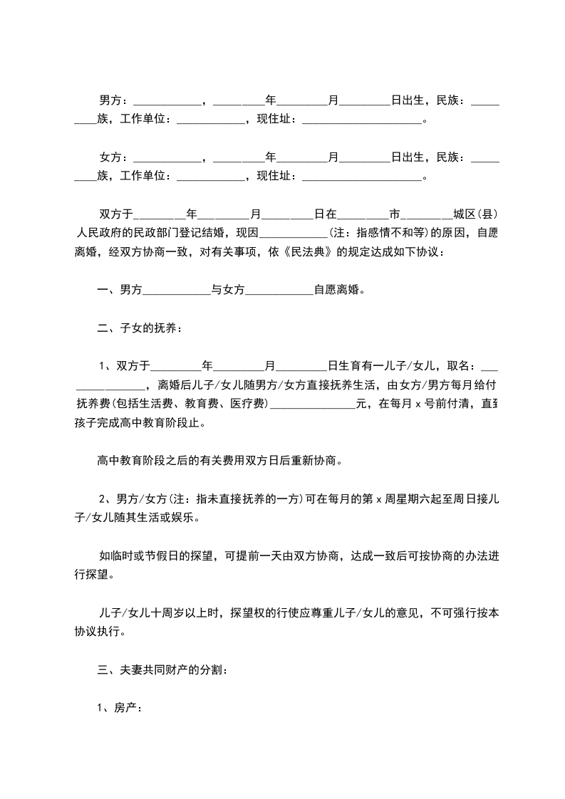 1、所有夫妻共有财产均归协议女方管理,协议男方拥有财产的支配权;