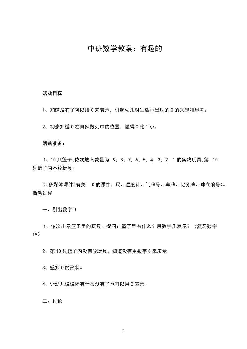 1、知道没有了可以用0来表示,引起幼儿对生活中出现的0的兴趣和思考。