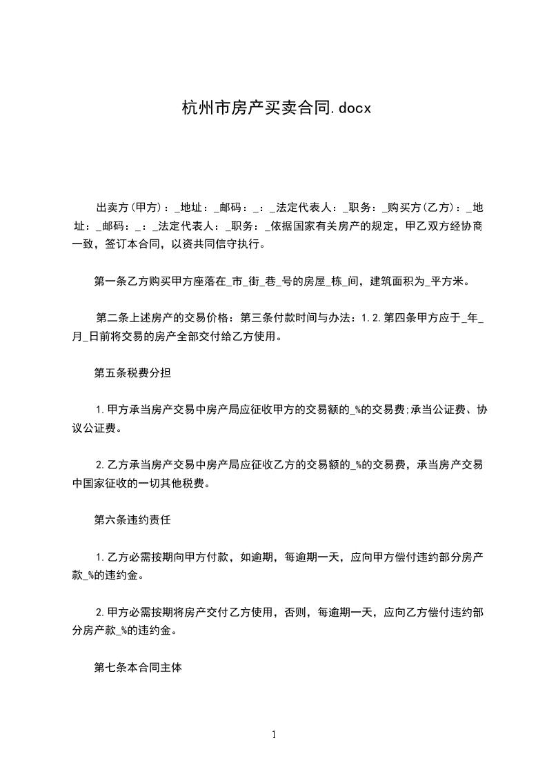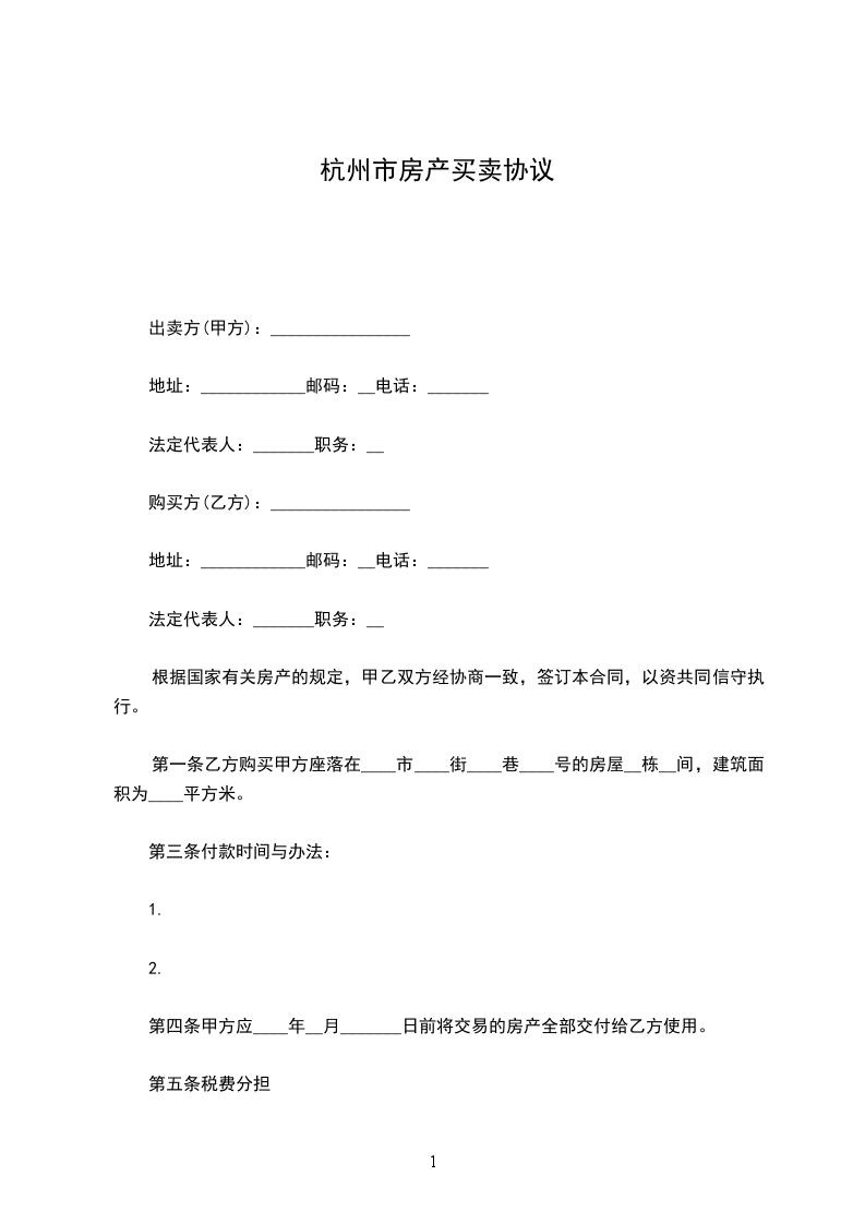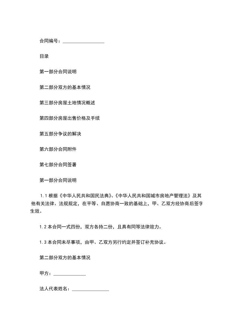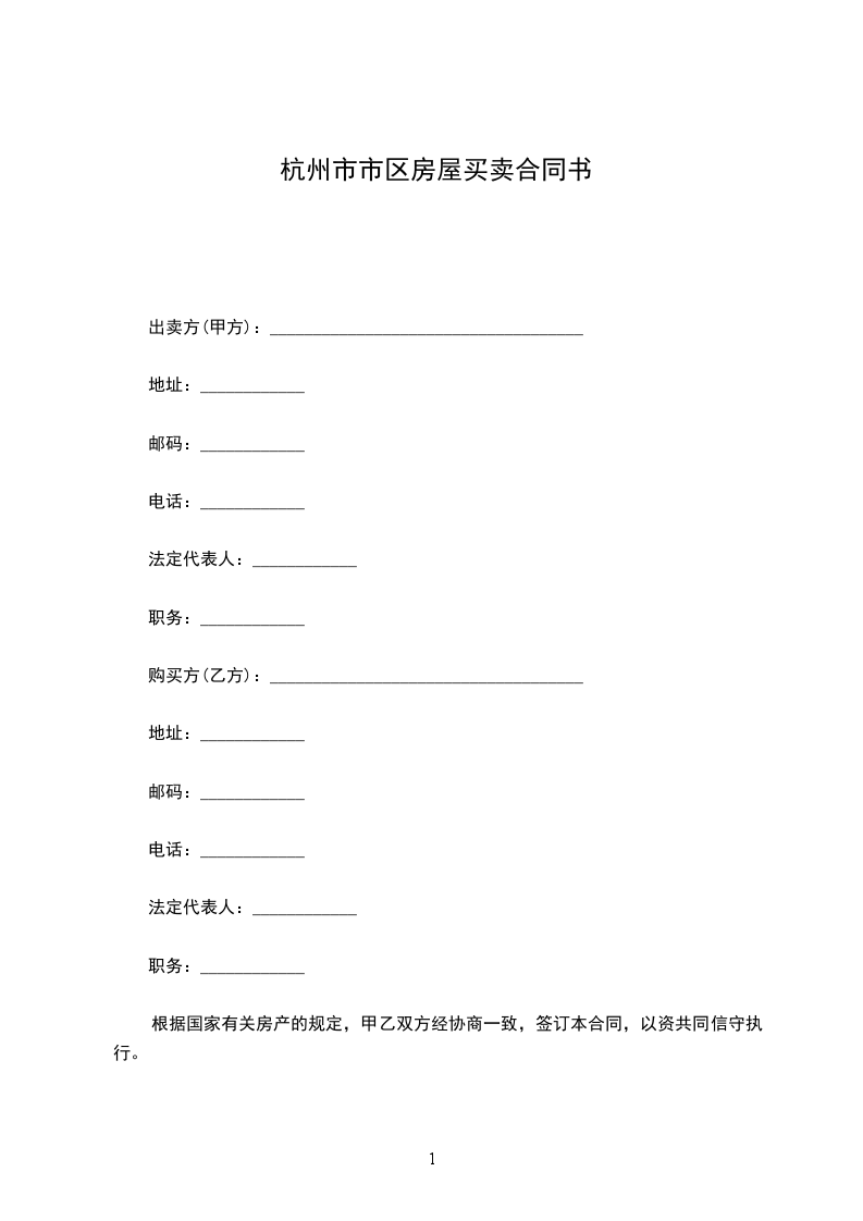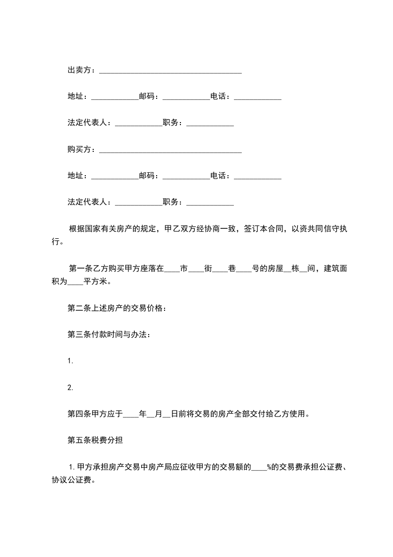 出卖方(甲方):_地址:_邮码:_:_法定代表人:_职务:_购买方(乙方):_地址:_邮码:_:_法定代表人:_职务:_依据国家有关房产的规定,甲乙双方经协商一致,签订本合同,以资共同信守执行。