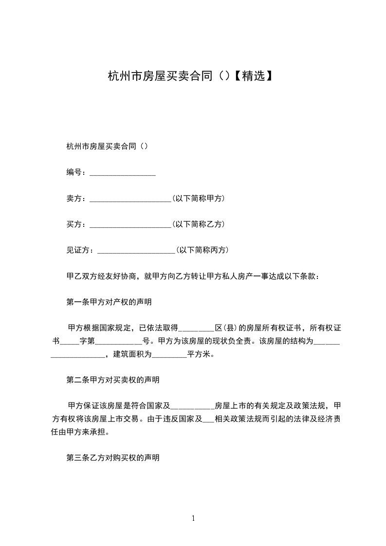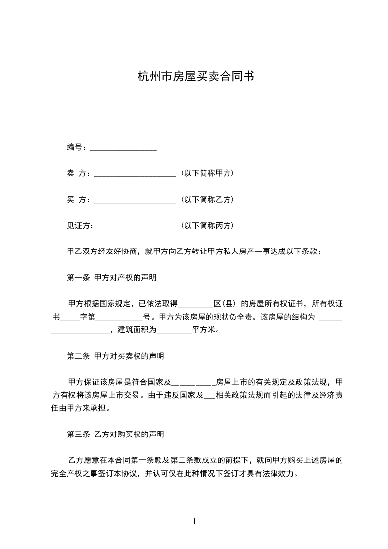 第一条乙方购买甲方座落在_市_街_巷_号的房屋_栋_间,建筑面积为_平方米。