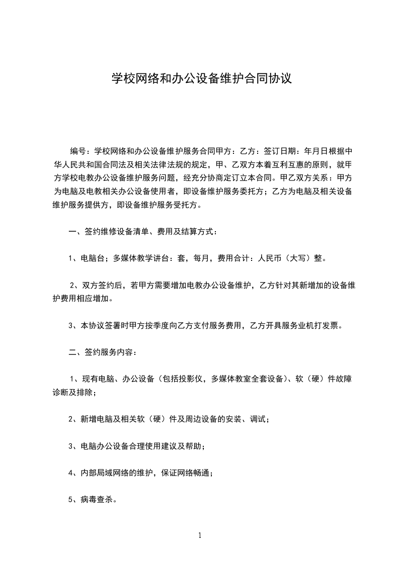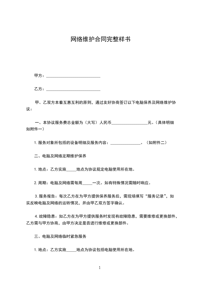甲、乙双方本着互惠互利的原则,通过友好协商签订以下电脑保养及网络维护协议: