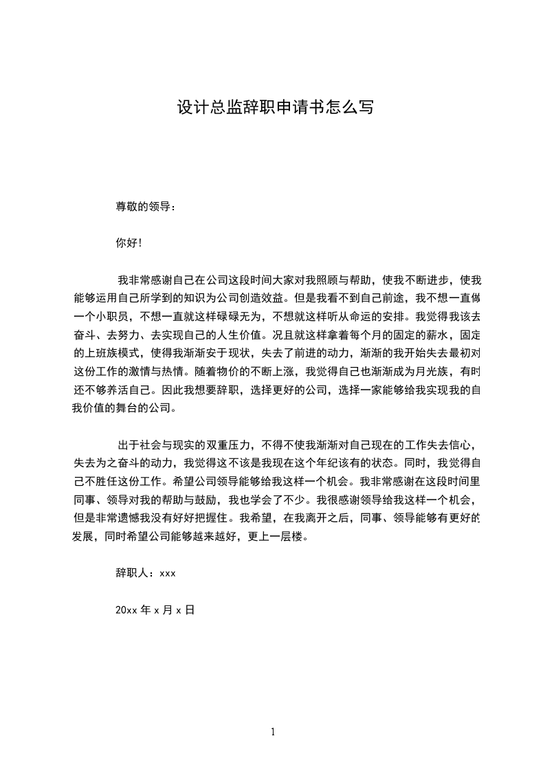 辞职人:xxx