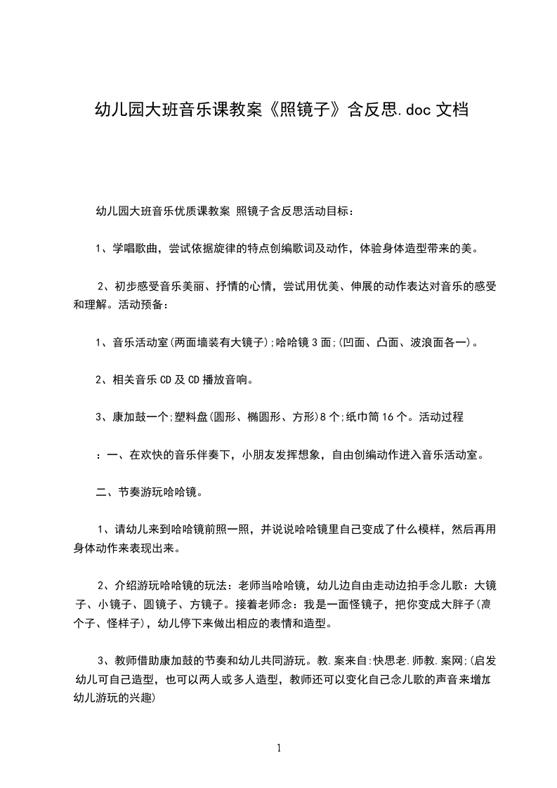 幼儿园大班音乐优质课教案 照镜子含反思活动目标: