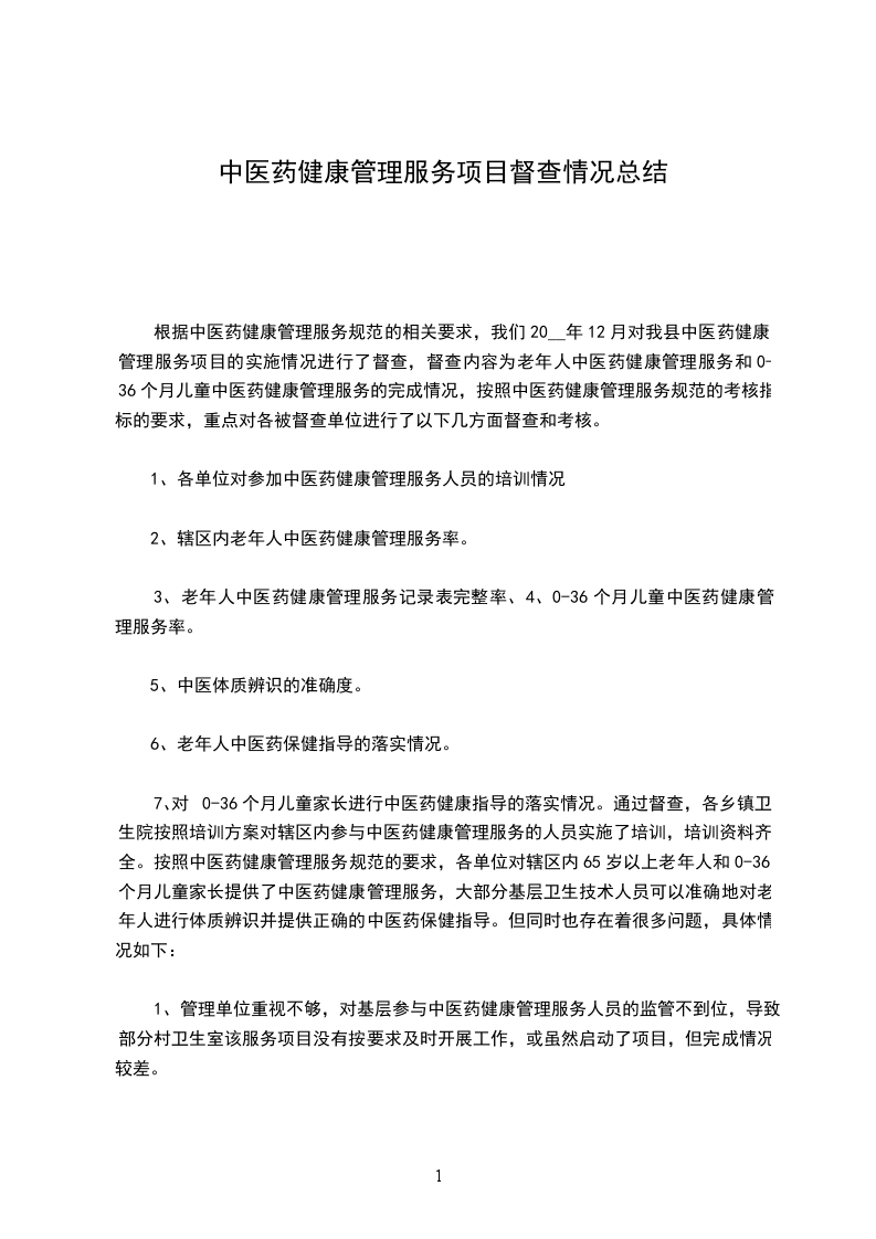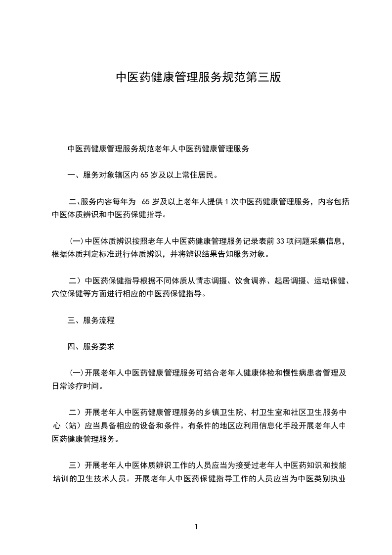 一、每年为老年人提供1次中医药健康管理服务,内容包括中医体质辨识和中医药保健指导。