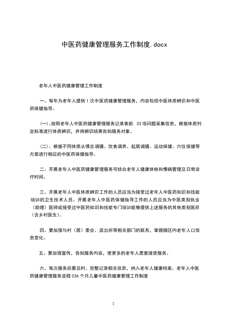 -老年人中医药健康管理工作制度