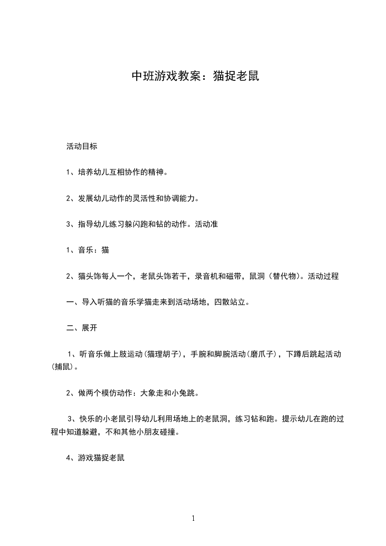 (3)调换角色,由原扮猫的扮老鼠,进行第二遍游戏,教师巡回指导。