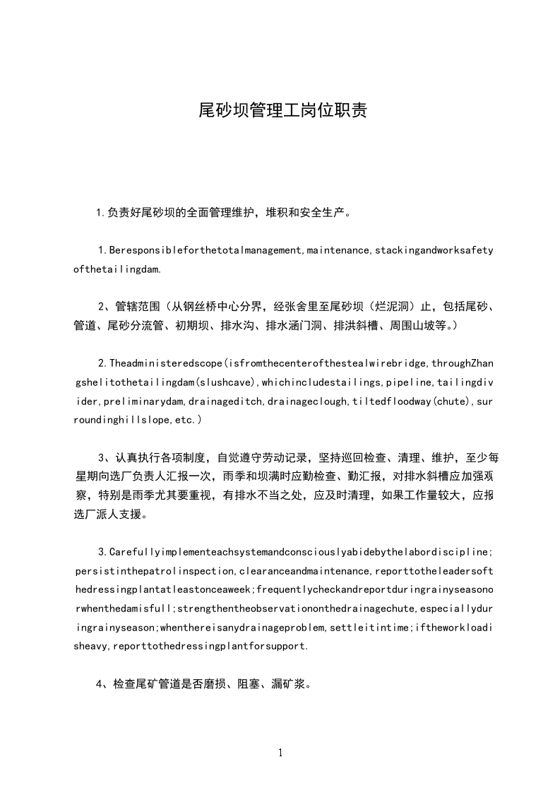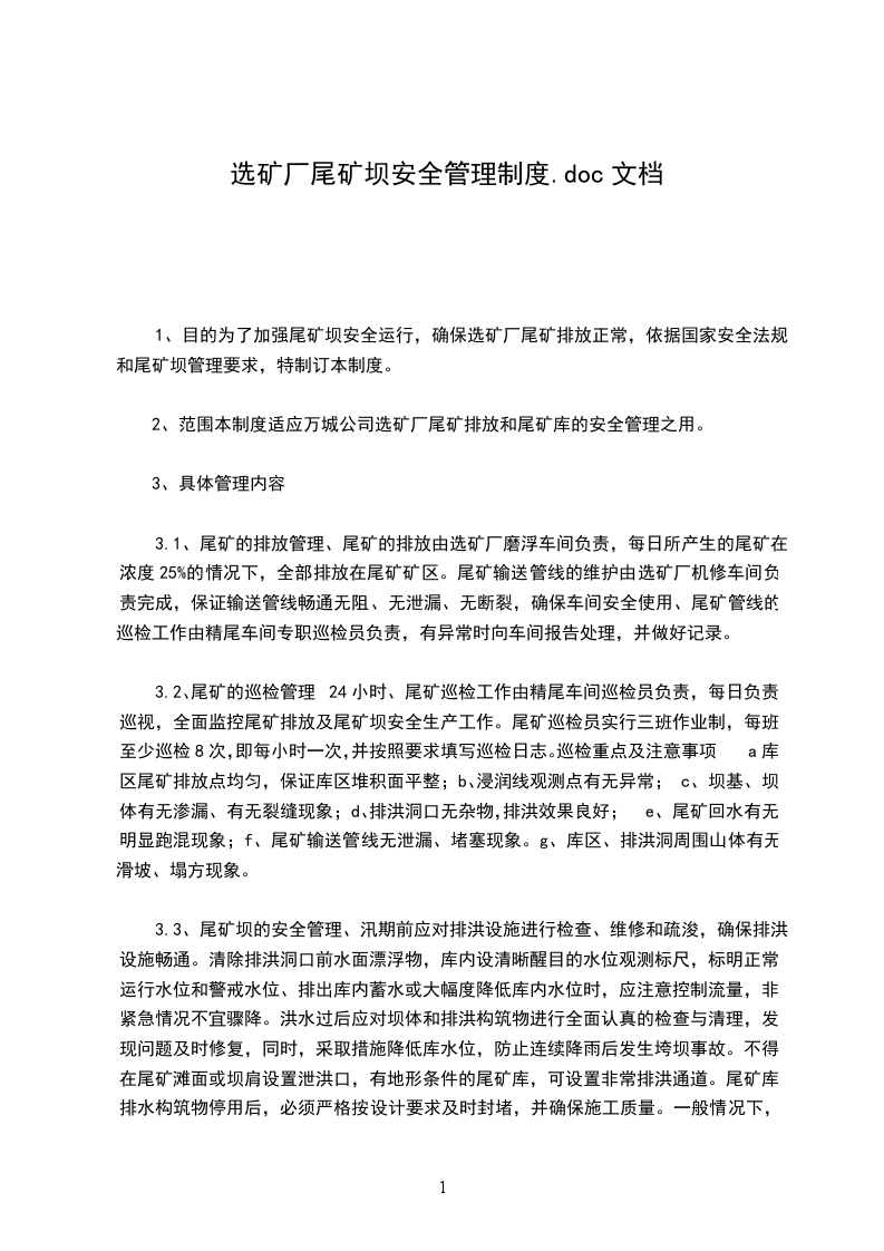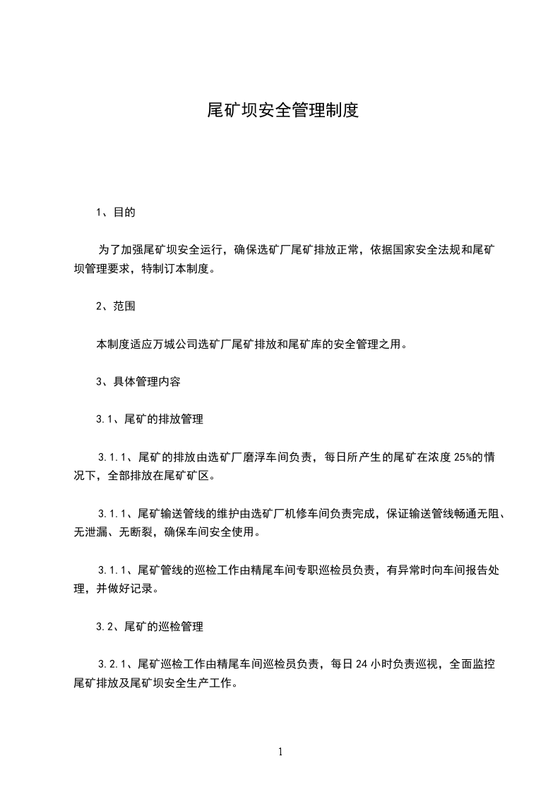 2、范围本制度适应万城公司选矿厂尾矿排放和尾矿库的安全管理之用。