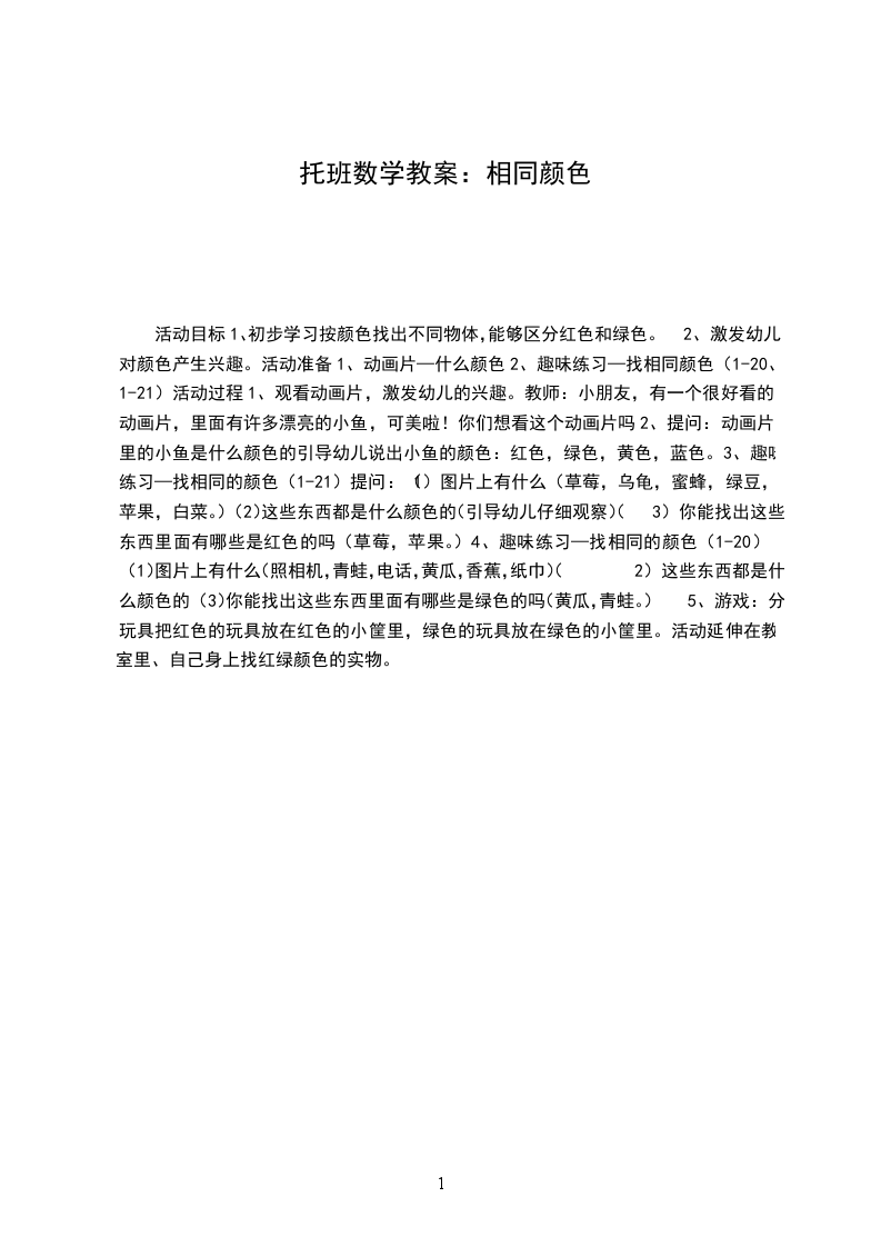 1、初步学习把相同颜色的不同物体放在一起。