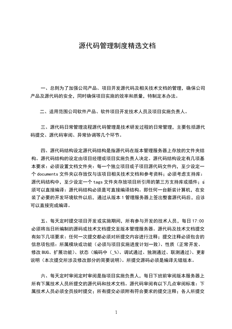 一、总则为了加强公司产品、项目开发源代码及相关技术文档的管理,确保公司产品及源代码的安全,同时确保项目实施的效率和质量,特制定本办法。