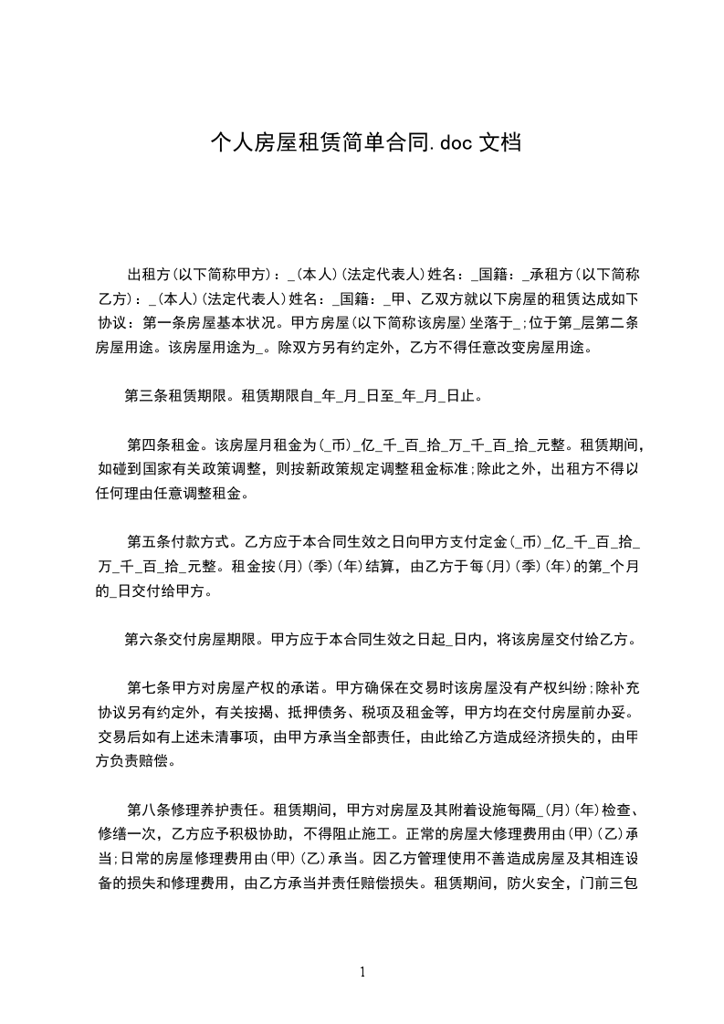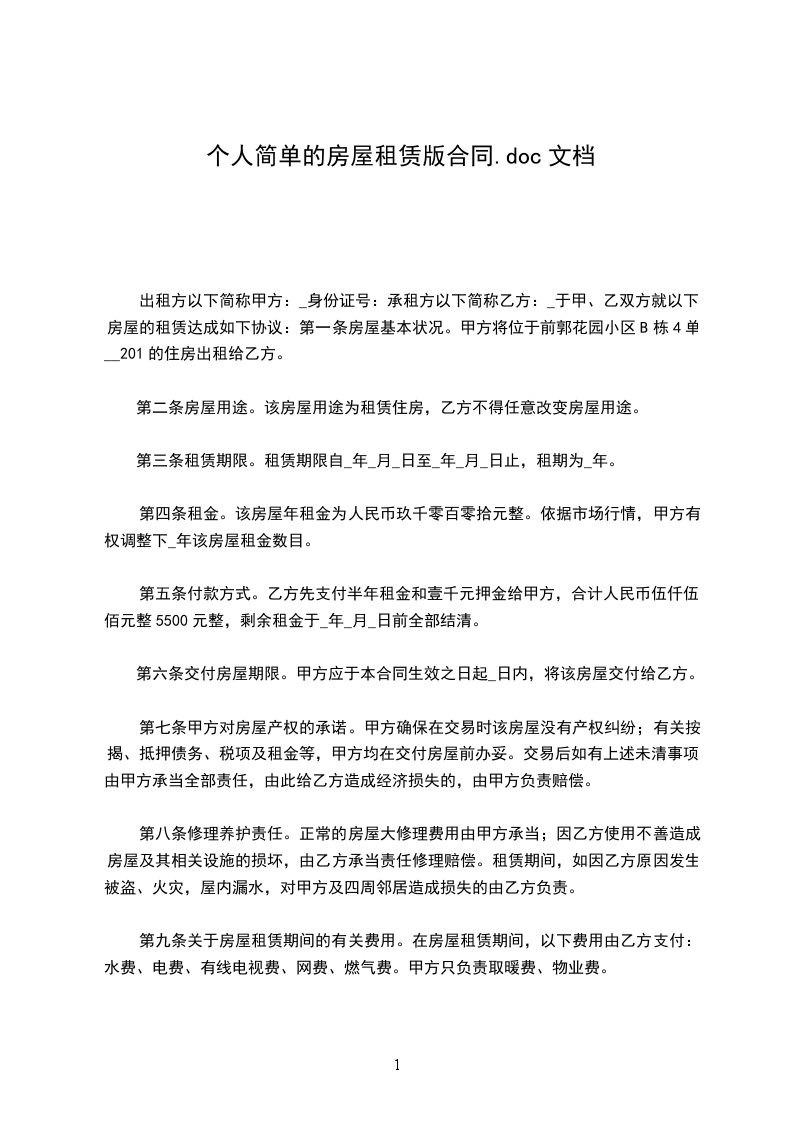 出租方(以下简称甲方):_承租方(以下简称乙方):_甲、乙双方就以下房屋的租赁达成如下协议:第一条房屋基本状况。甲方房屋(以下简称该房屋)坐落于温州市下吕浦_层第二条房屋用途。该房屋用途为租赁住房。除双方另有约定外,乙方不得任意改变房屋用途。