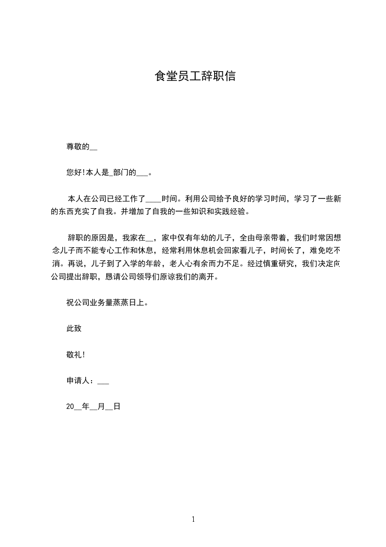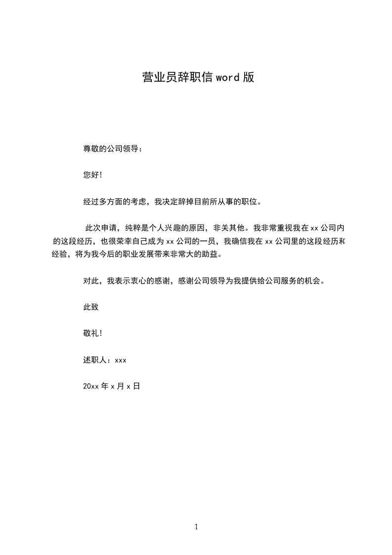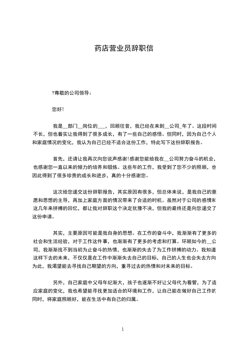 同仁堂营业员辞职信word版