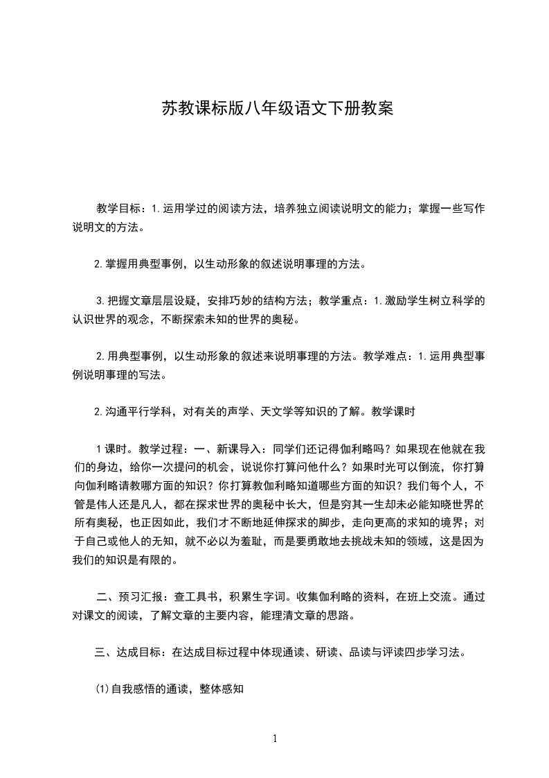 二、预习汇报:查工具书,积累生字词。收集伽利略的资料,在班上交流。通过对课文的阅读,了解文章的主要内容,能理清文章的思路。