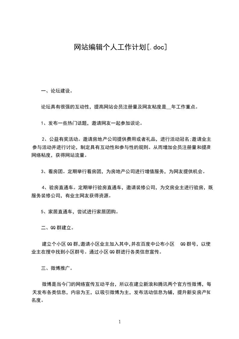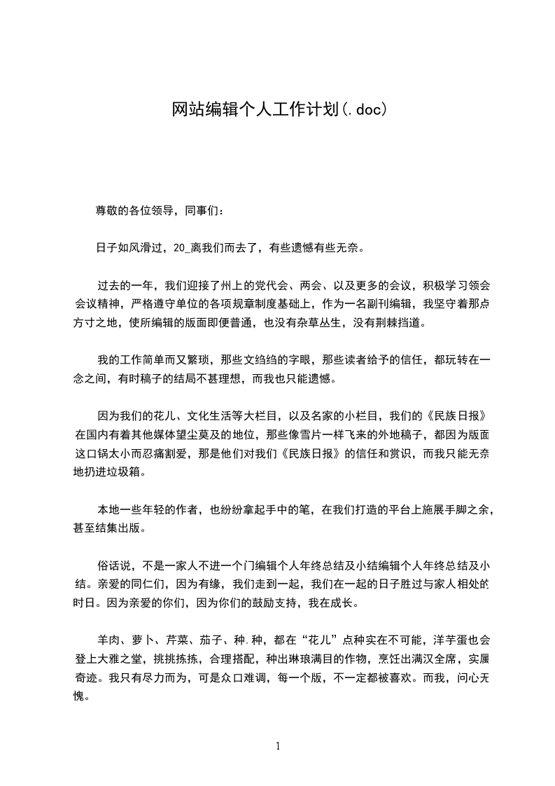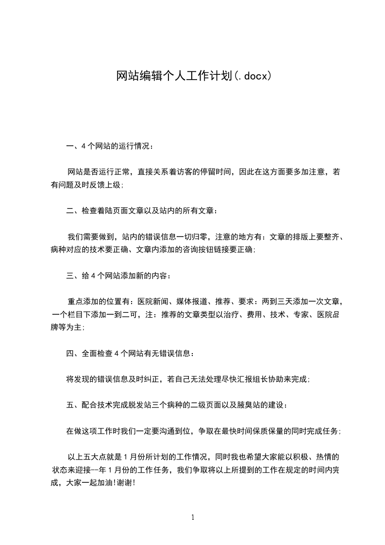 网站内容编辑工作者也许在大家的眼里是一个简单无聊的工作,实际上,网站编辑的工作要遵循三点原则:一是编辑工作的规范性:严格按照规定的标题字数,标题内容,文章格式等软文写作编辑规范;二是编辑工作的突破性:网站内容不求多,但求精,增强内容的可读性,关注性;三是编辑工作的创造性:能过对新闻高进进行扩展及增加内容,撰写新闻通稿。工作上要达到以上三点,工作也是蛮有难度的,但是我没有怕过。我会利用业余的时间去了解同行网站内容编辑得如何,对照自己工作的程度,知道自己会不会被人家超越。看清自己的优势,和别人的优势,理清自己的思路,按照自己的计划做好自己的编辑工作。作为网编,每天都要和搜索引擎打交道的,没有它,将会寸步难行,还要知道如何在最短的时间里找到自己最需要的东西。刚开始的工作基本上是文章采集,因为是刚开始接触医疗集团,对于很多知识不懂,当然对于文章的原创性也有一定的难度。不过不能只是一味的采集,照搬别人网站上的,要多总结经验,把经验写在本子上。要学会如何把网络上采集下来的文章经过整合修改后变成属于自己的东西。如果你把别人的东西只是复制粘贴,然后修改医院名字的话,那么你站的收录量是不会上来的,我们知道这样的采集文章是没有阅读价值的,还有最重要的一点就是搜索引擎可以通过简单的方法够判断文章是否采集的,一个网站文章采集的越多,这个网站无效文章的比例就越高,也就是说这个网站的价值就越低,于是排名开始下滑,最后被降权,辛苦了那么长时间,最后就这样白搭了。所有采集文章是一个非常大的弊端!我是网站编辑,虽然我不是负责网站数据分析工作和推广工作,而我也尽我的努力,让自己的文章被百度收录,那么如何让百度快速收录自己的文章而且有排名呢?其实,文章的质量和原创度起到很大的影响,其中包括:文章的标题多少字为宜,怎么样的标题更加引人注意,文章关键字应该如何确定,文章内容要怎么安排,标点符号应该注意哪些,图片大小以及格式怎样等等。这些对文章是否被收录有很大的影响!我希望通过自己写的文章,把自己的网站推广出去,让我们网站的曝光率更高,提高知名度,从而打响我们网站的品牌!在新的20__年里,我会依照网站编辑工作计划做好自己的本份工作,还要根据实际情况的要求及时调整自己的计划,我相信自己的工作水平会有很大的提升。不过作为网站编辑和推广,不能安于现状,不思进取。一定要不断地接触新知识,努力提升自身的技能。现在我们要学的东西是非常之多的,单单从自己工作中学到的知识是很难参透各个技能之间的。所以,对于我的20__年度计划如下: