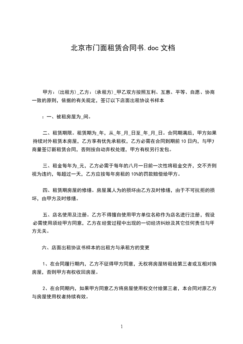 甲方:(出租方)_乙方:(承租方)_甲乙双方按照互利、互惠、平等、自愿、协商一致的原则,依据的有关规定,签订以下店面出租协议书样本