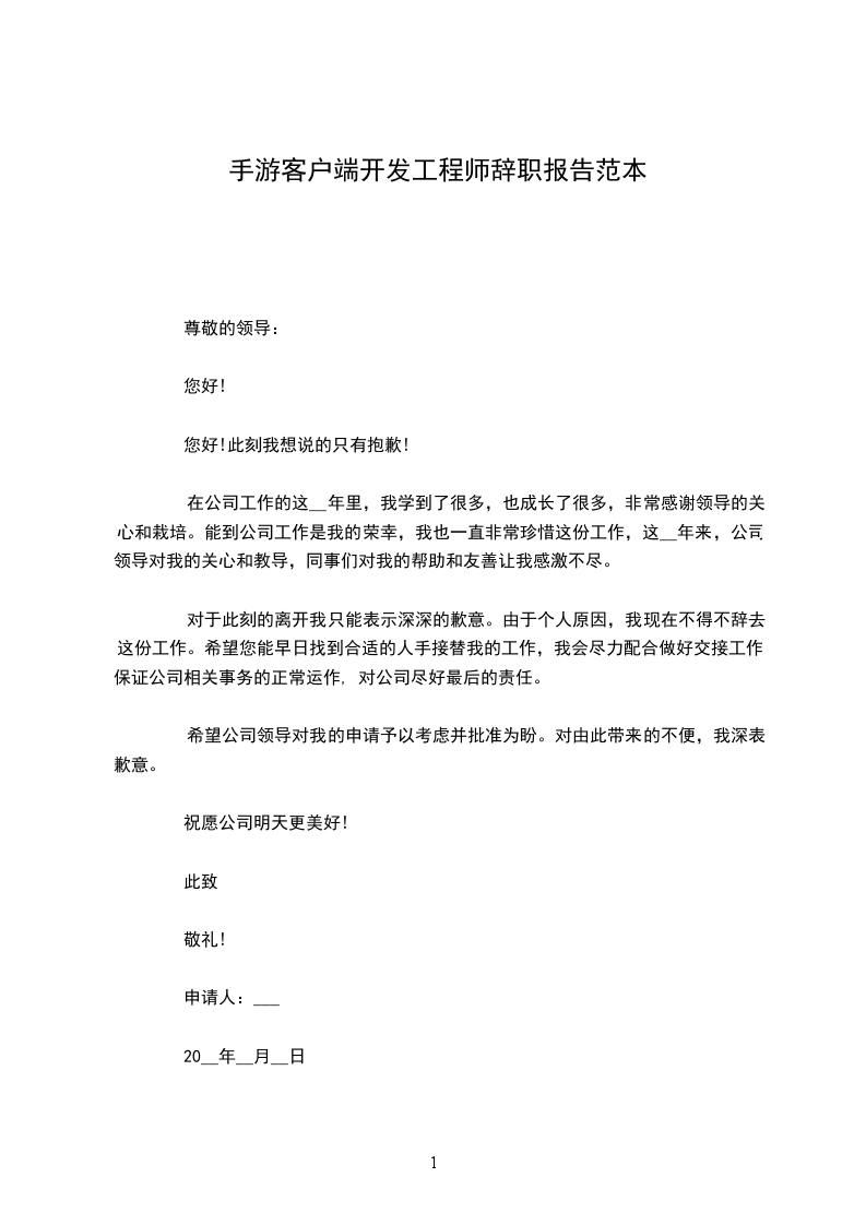 资深客户端开发工程师辞职报告范本