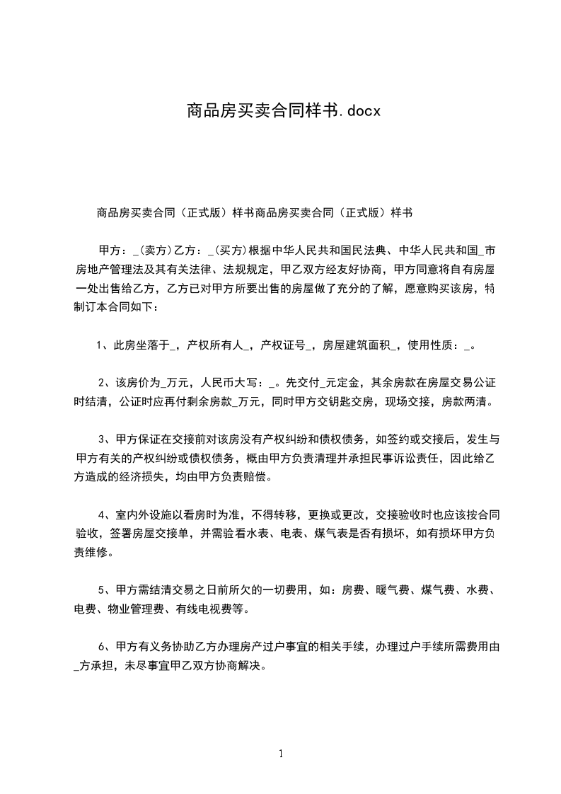 甲方:_乙方:_签订日期:_年_月_日出卖人:(以下称甲方)(以下称乙方)买受人:根据中华人民共和国城市房地产管理法以及其他有关法律、法规规定,甲方和乙方在平等、自愿、协商一致的基础上就买卖商品房达成如下协议:第一条房屋的基本情况:甲方房屋(以下简称该房屋)坐落于