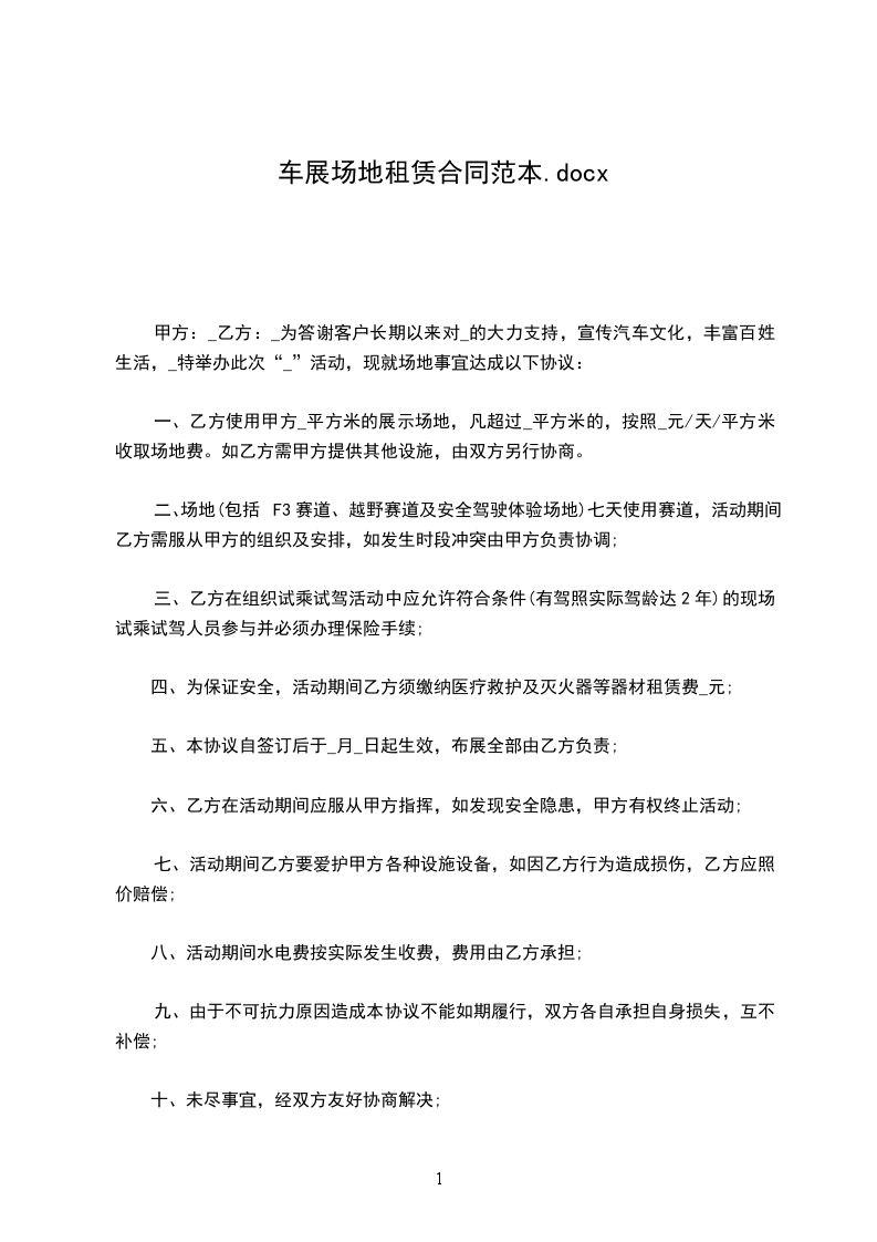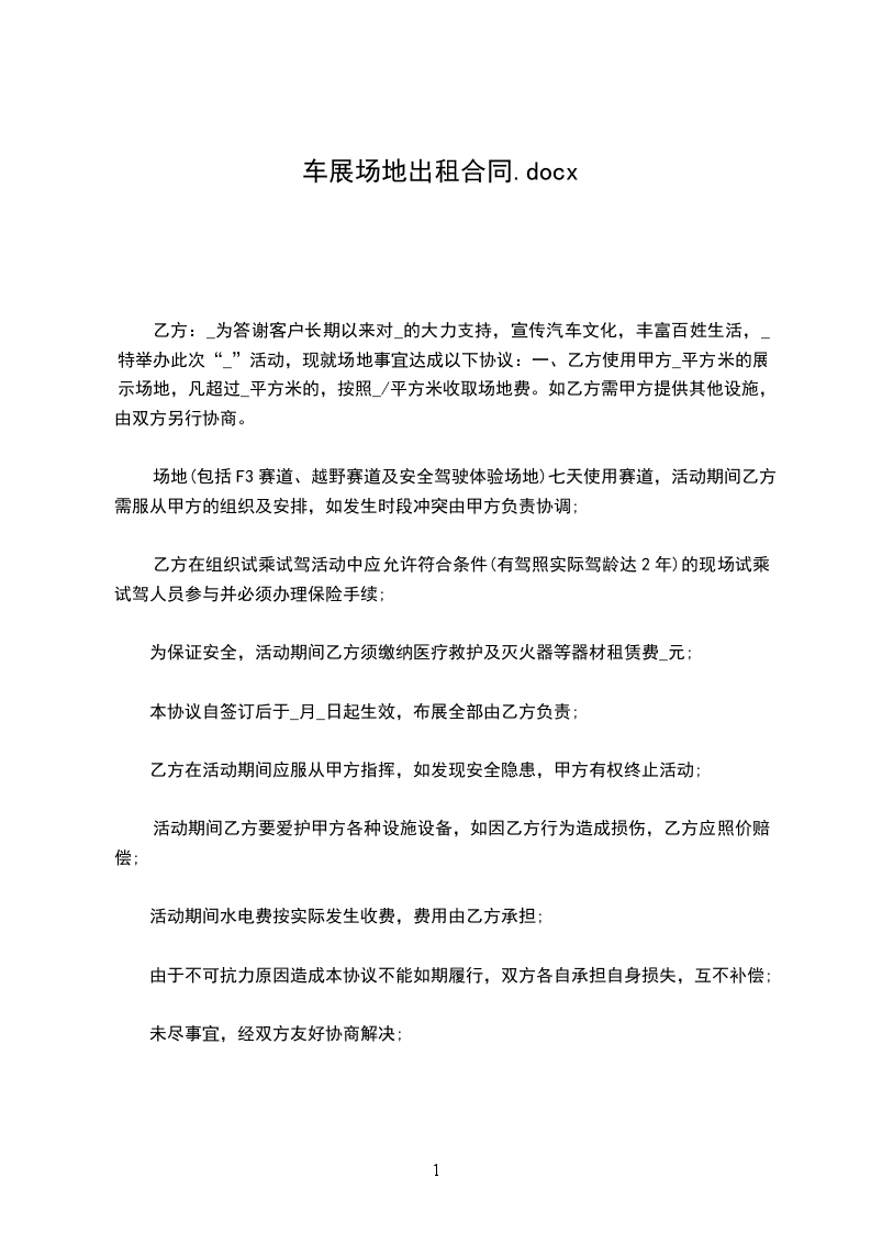 甲方:_乙方:_为答谢客户长期以来对_的大力支持,宣传汽车文化,丰富百姓生活,_特举办此次“_”活动,现就场地事宜达成以下协议: