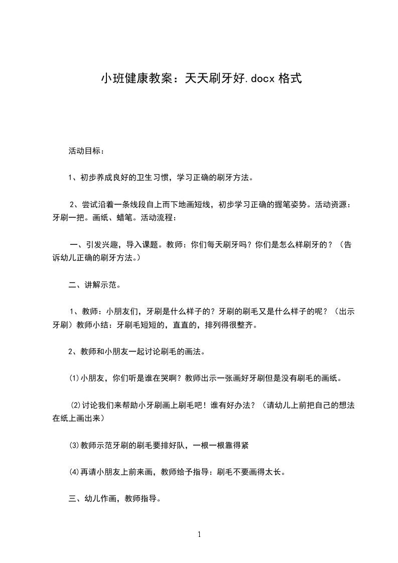 2、尝试沿着一条线段自上而下地画短线,初步学习准确的握笔姿势。活动准备:牙刷一把。画纸、蜡笔。
