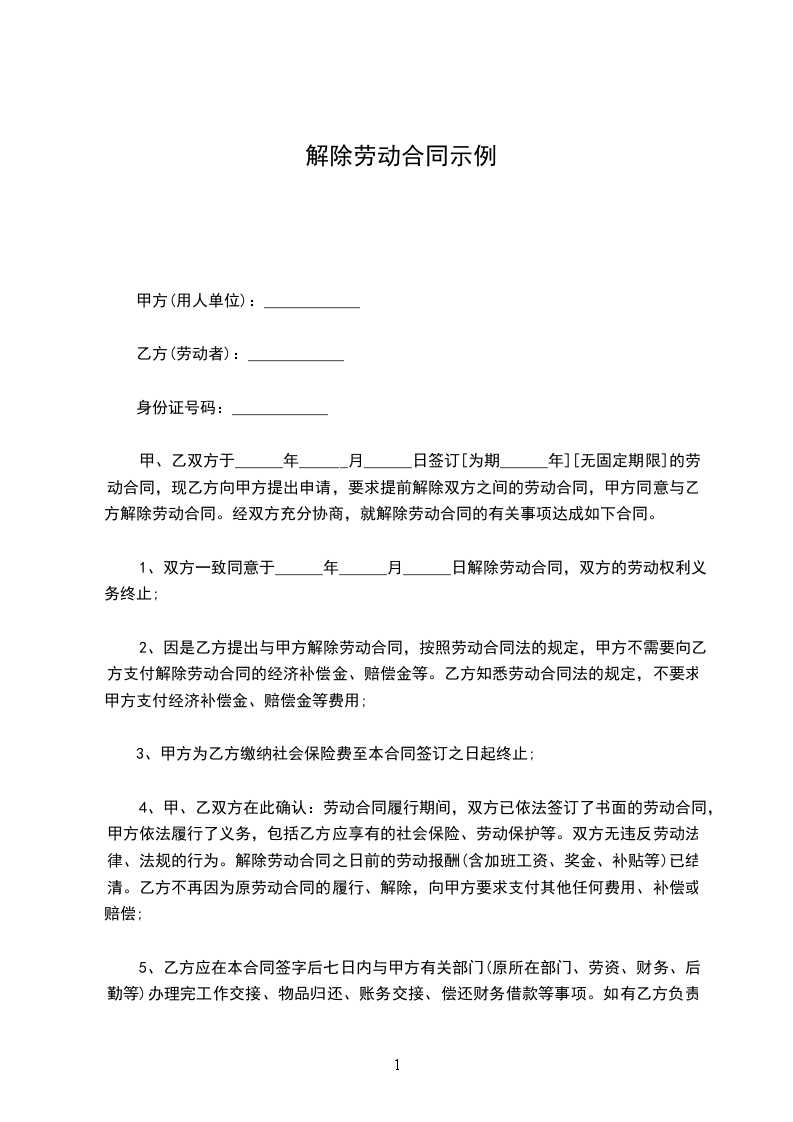 二、甲、乙双方同意,由甲方一次性支付乙方经济补偿金待遇;一次性经济补偿金共计人民币¥__________元整,从乙方签领该款时起,甲、乙双方解除劳动合同,终结劳动、保险关系。