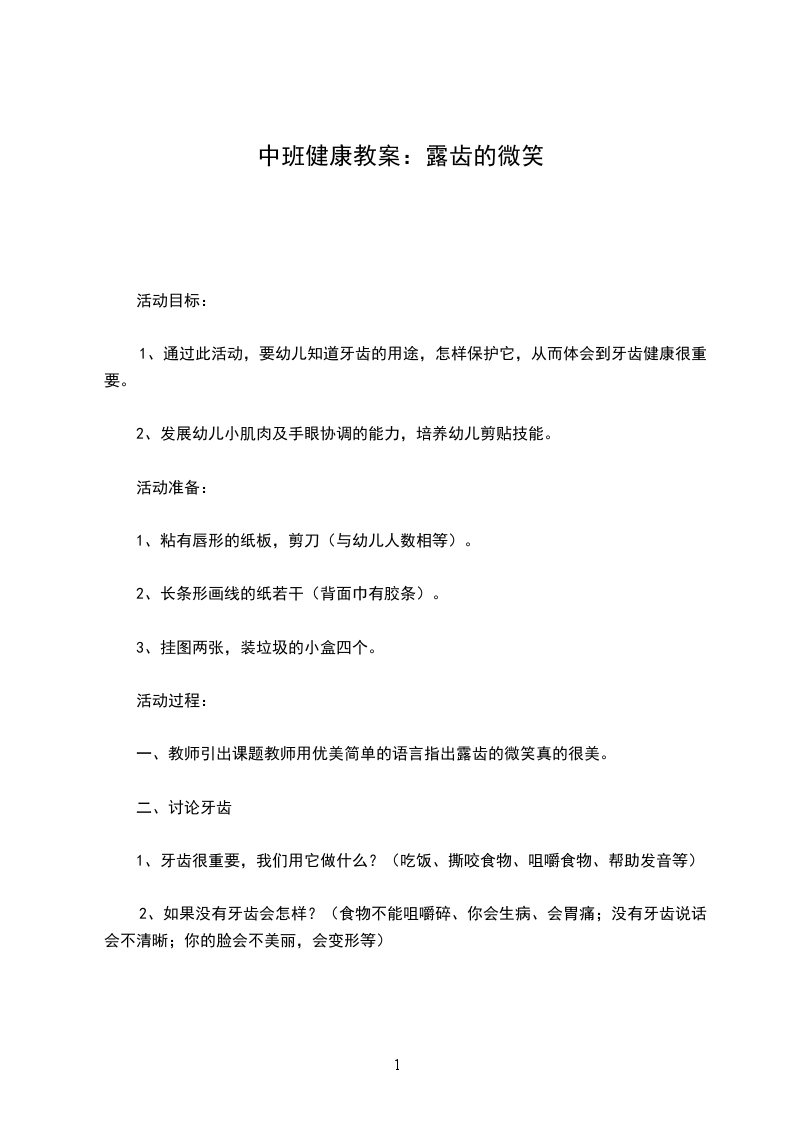 1、通过此活动,要幼儿知道牙齿的用途,怎样保护它,从而体会到牙齿健康很重要。