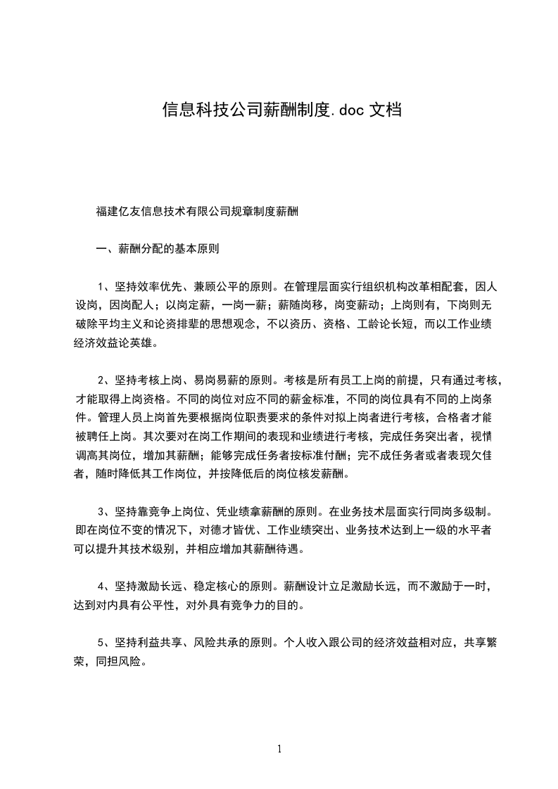 福建亿友信息技术有限公司规章制度薪酬