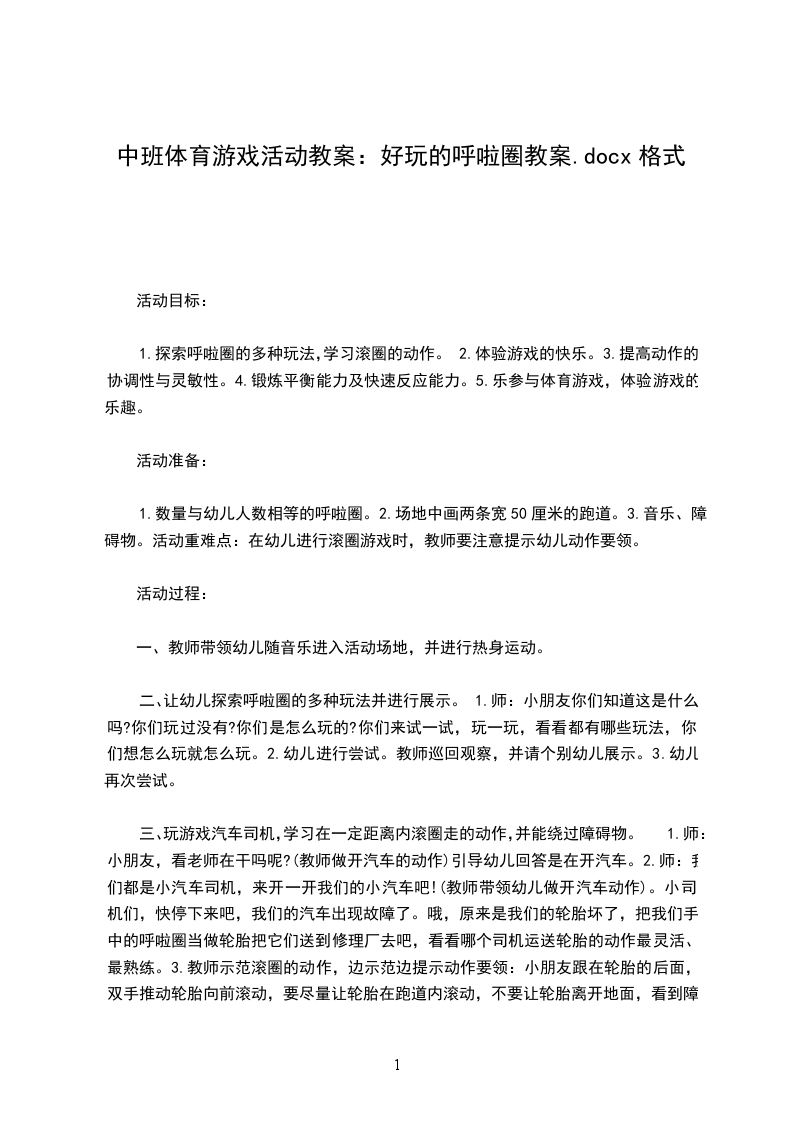 中班游戏活动呼啦圈游戏新编教案主要包含了曲线走,夹包射门,青蛙跳跳,鲤鱼跳龙门,投篮等内容,发展幼儿曲线走的能力。发展幼儿的下肢力量和身体协调性。适合幼儿园老师们上中班游戏活动课,快来看看中班游戏呼啦圈游戏新编教案吧。幼儿园中班游戏:呼啦圈游戏新编摇呼啦圈对幼儿园里大多数孩子来说是困难的,但我们可以利用它们大大的环形特点,为我们幼儿园开展体育活动服务。现介绍几则新的游戏方法。