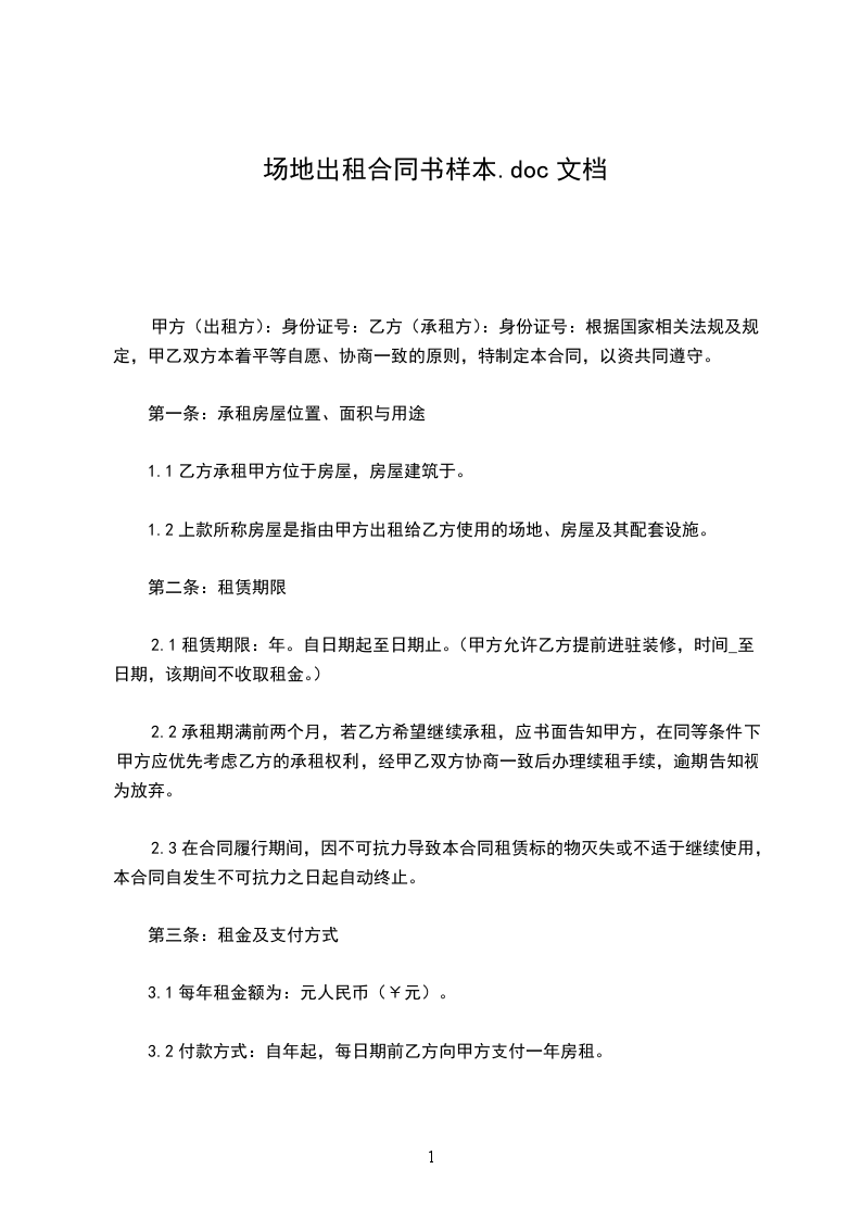 1.2上款所称房屋是指由甲方出租给乙方使用的场地、房屋及其配套设施。