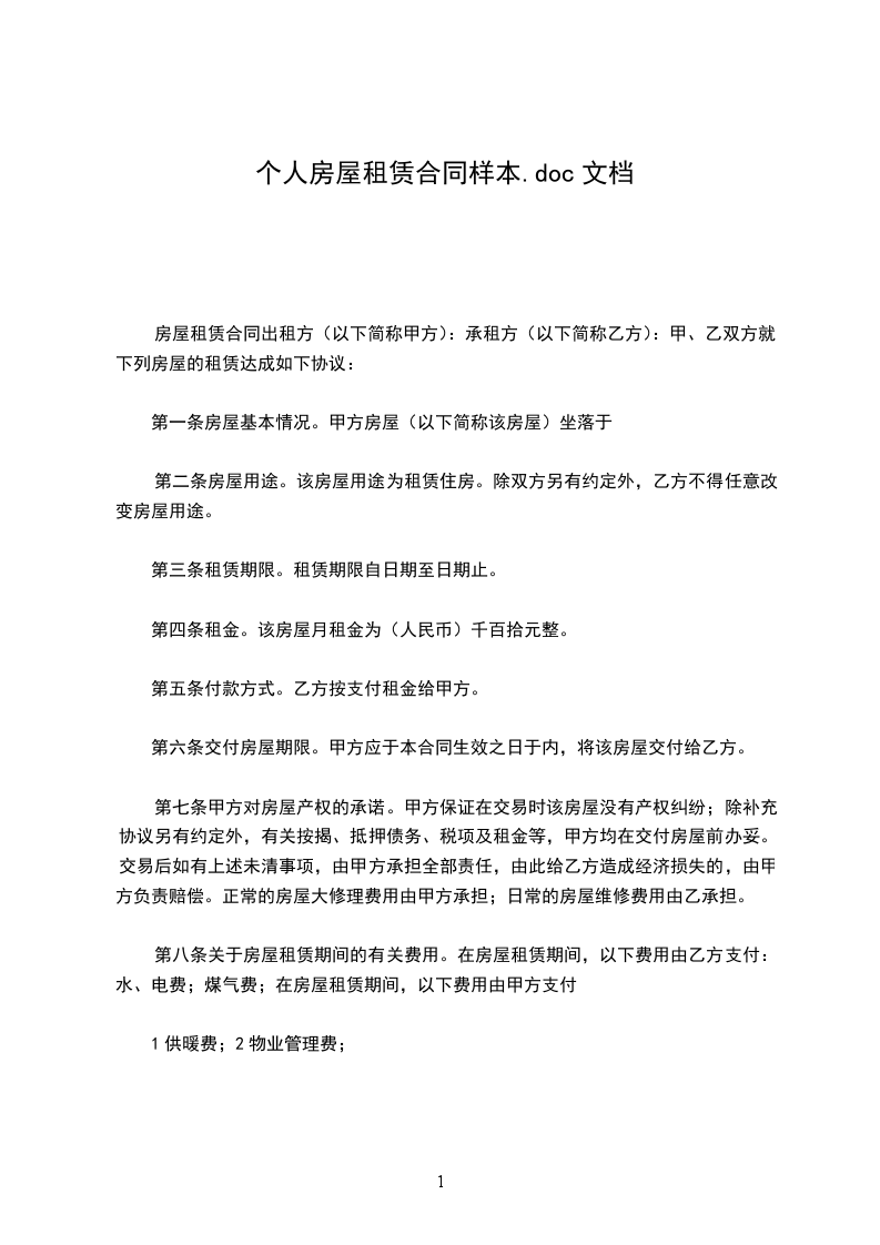 第四条租金。该房屋月租金为(人民币)千百拾元整。