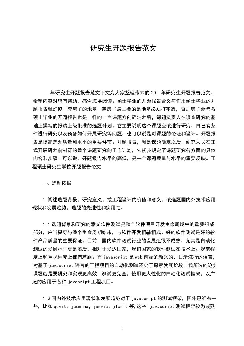 ___年研究生开题报告范文下文为大家整理带来的20__年研究生开题报告范文,希望内容对您有帮助,感谢您得阅读。硕士毕业的开题报告含义与作用硕士毕业的开题报告就好似一套房子的地基,盖房子最主要的是地基必须打牢靠,否则房子会垮塌。硕士毕业的开题报告也是一样的。当课题方向确定之后,课题负责人在调查研究的基础上撰写的报请上级批准的选题计划。它主要说明这个课题应该进行研究,自己有条件进行研究以及预备如何开展研究等问题,也可以说是对课题的论证和设计。开题报告是提高选题质量和水平的重要环节。开题报告,就是课题确定之后,研究人员在正式开展研之前制订的整个课题研究的工作计划,它初步规定了课题研究各方面的具体内容和步骤。可以说,开题报告水平的高低,是一个课题质量与水平的重要反映。工程硕士研究生学位开题报告论文