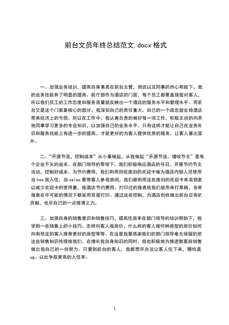 二、“开源节流,控制成本”从小事做起,从我做起“开源节流,增收节支”是每个企业不矢的追求。在部门领导的带领下,我们积极响应酒店的号召,开展节约节支活动,控制好成本。为节约费用,我们利用回收废旧的欢迎卡做为酒店内部人员使用,当hse房入住,当sales要带客人参观房间,我们都利用这些废旧的欢迎卡来装钥匙以减少欢迎卡的使用量,给酒店节约费用。打印过的报表纸我们就用来打草稿,各种报表在尽可能的情况下都采用双面打印。通过这些控制,为酒店创收做出前台应有的贡献,也尽自己的一点微薄之力。
