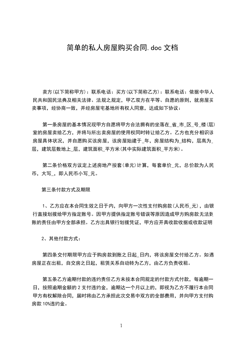 第五条乙方逾期付款的违约责任乙方未按本合同规定的付款方式付款,每逾期一日,按照逾期金额的2支付违约金,逾期达一个月以上的,即视为乙方不履行本合同,甲方有权解除合同,届时将由乙方承担此次交易中双方的全部费用,并向甲方支付购房款10%违约金。