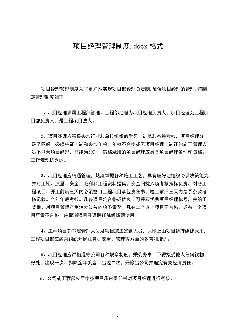 项目经理管理制度为了更好地实现项目部经理负责制,加强项目经理的管理,特制定管理制度如下:
