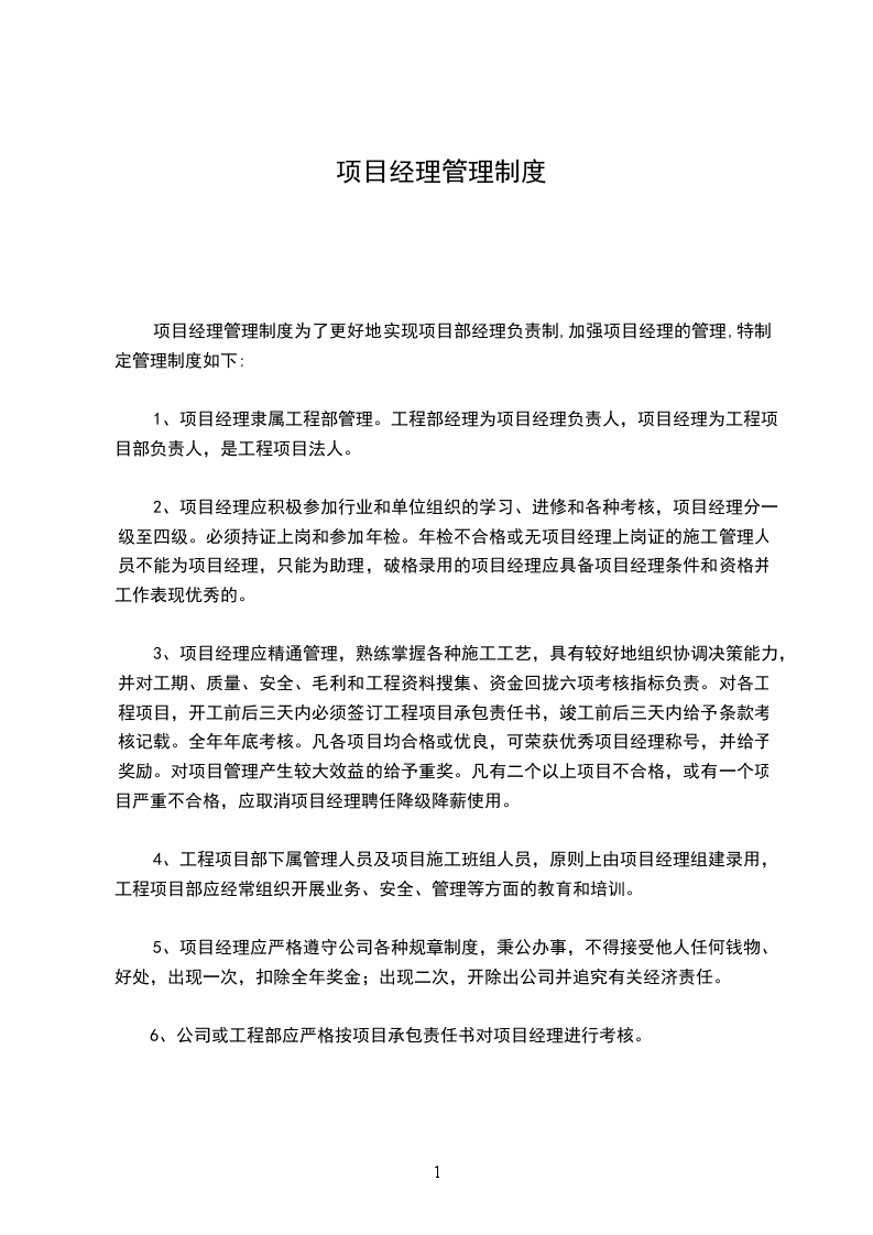 5、项目经理应严格遵守公司各种规章制度,秉公办事,不得接受他人任何钱物、好处,出现一次,扣除全年奖金;出现二次,开除出公司并追究有关经济责任。