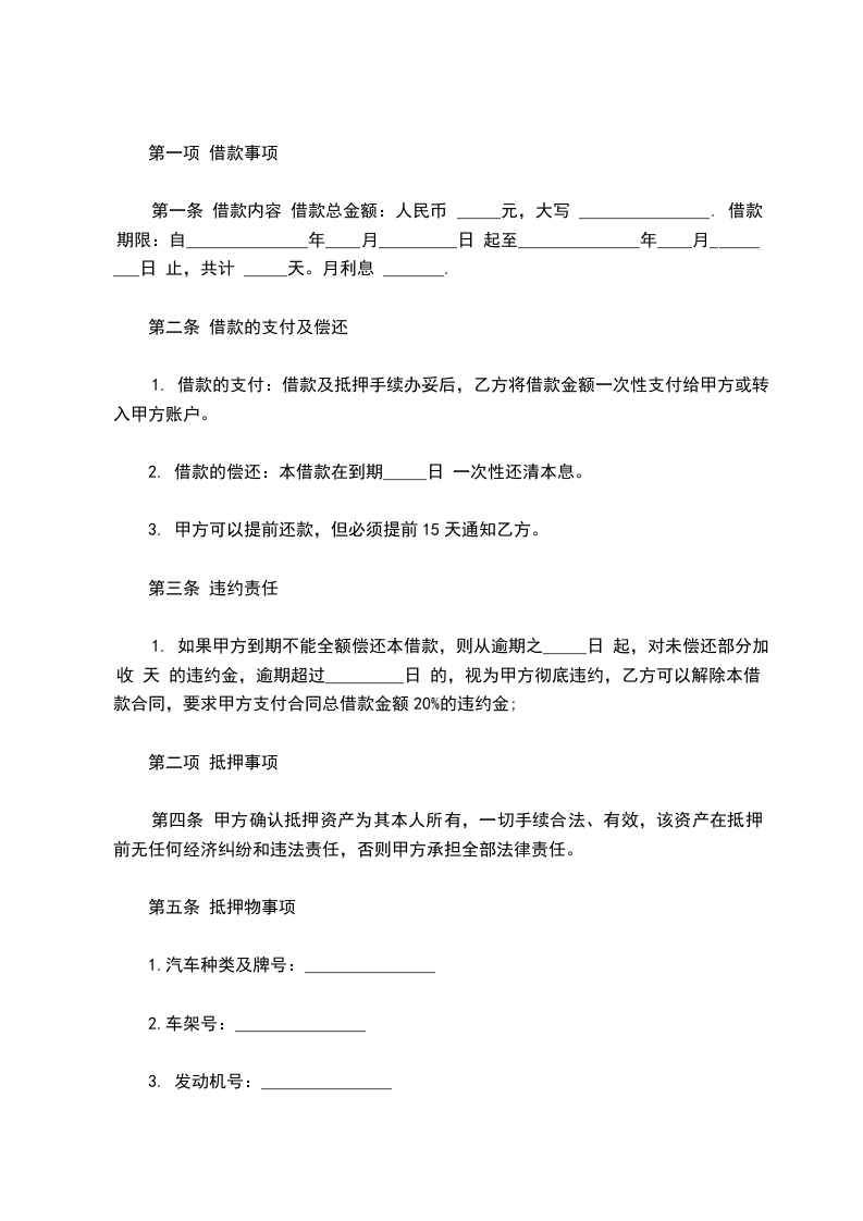 甲方(借款人):_身份证号码:_乙方(贷款人):_身份证号码:_甲乙双方就借款事宜,在平等自愿、协商一致的基础上达成如下协议,以资双方共同遵守。乙方贷给甲方人民币(大写)_,于_年_月_日前交付甲方。借款利息:_借款期限:还款日期:_年_月_日。还款方式:现金_支付。违约责任: