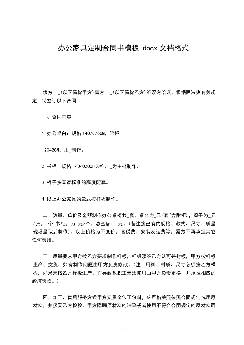 四、加工、售后服务方式甲方负责全包工包料,应严格按照依照合同规定选用原材料,并接受乙方检验。甲方隐瞒原材料的缺陷或者使用不符合合同规定的原材料而影响办公家具的质量时,乙方有权要求重作、修理、减少价款或退货。保修期为_年,在保修期内,家具出现质量问题,甲方应修理(包括材料费和工时费)。在保修期内,因同一严重质量问题,修理两次仍达不到标准要求的,凭修理记录和有关证明,甲方应为乙方调换同规格型号、同样式的产品。
