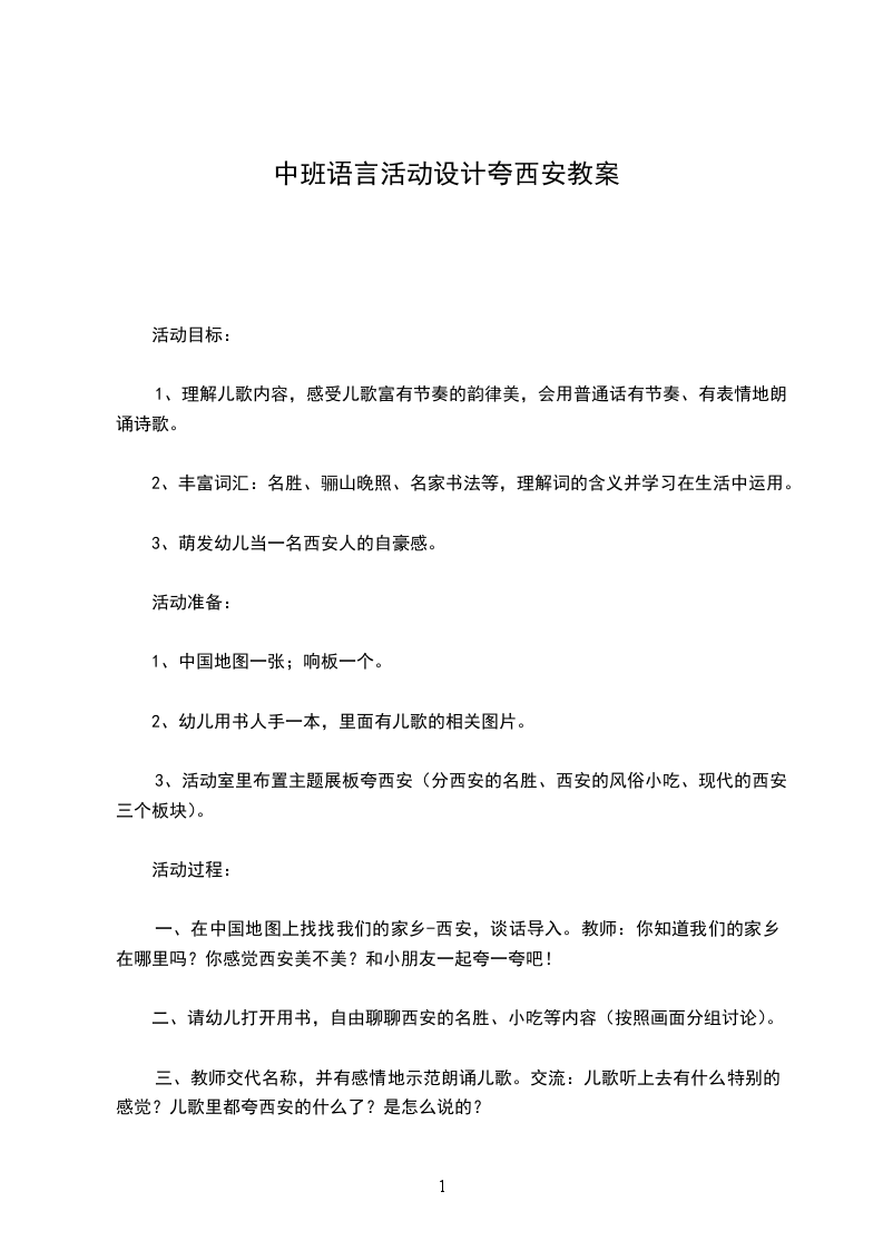 3、萌发幼儿当一名西安人的自豪感。