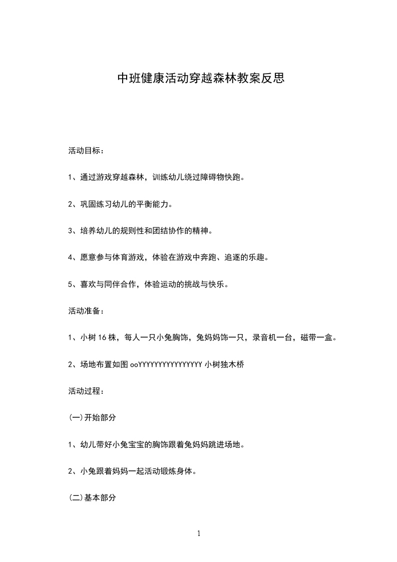 1、通过游戏穿越森林,训练幼儿绕过障碍物快跑。
