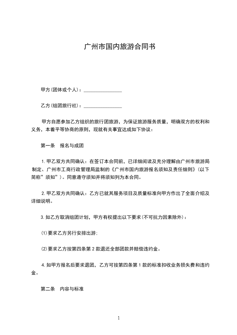 1.甲乙双方共同确认:在签订本合同前,已详细阅读及充分理解由广州市旅游局制定、广州市工商行政管理局监制的《广州市出境旅游报名须知及责任细则》(以下简称“须知”)。同意遵守须知并将须知列为本合同附件。