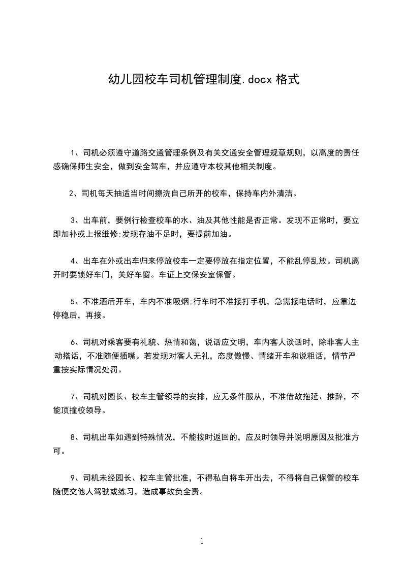 1、司机在园内要注意生活文明,尊重校领导和全体师生,在学生及家长面前注意文明及形象,并遵守学校其他相关制度。1