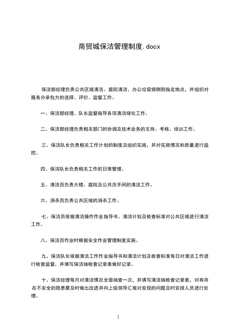 四、保洁队长负责相关工作的日常管理。