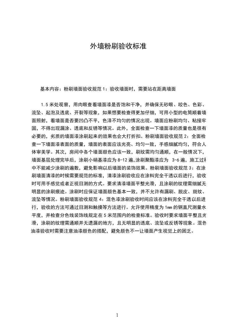 基本内容:粉刷墙面验收规范1:验收墙面时,需要站在距离墙面